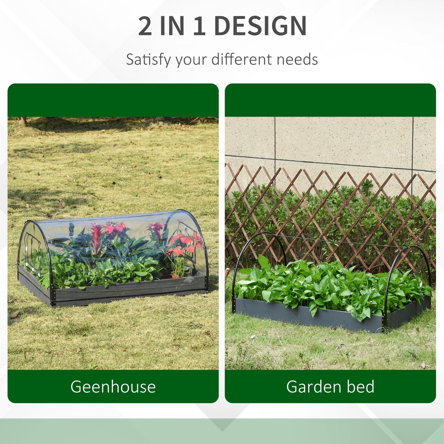 Garden Bed Planter Kit Box Greenhouse w/ Windows Dual Use 120 x 79 x 53cm