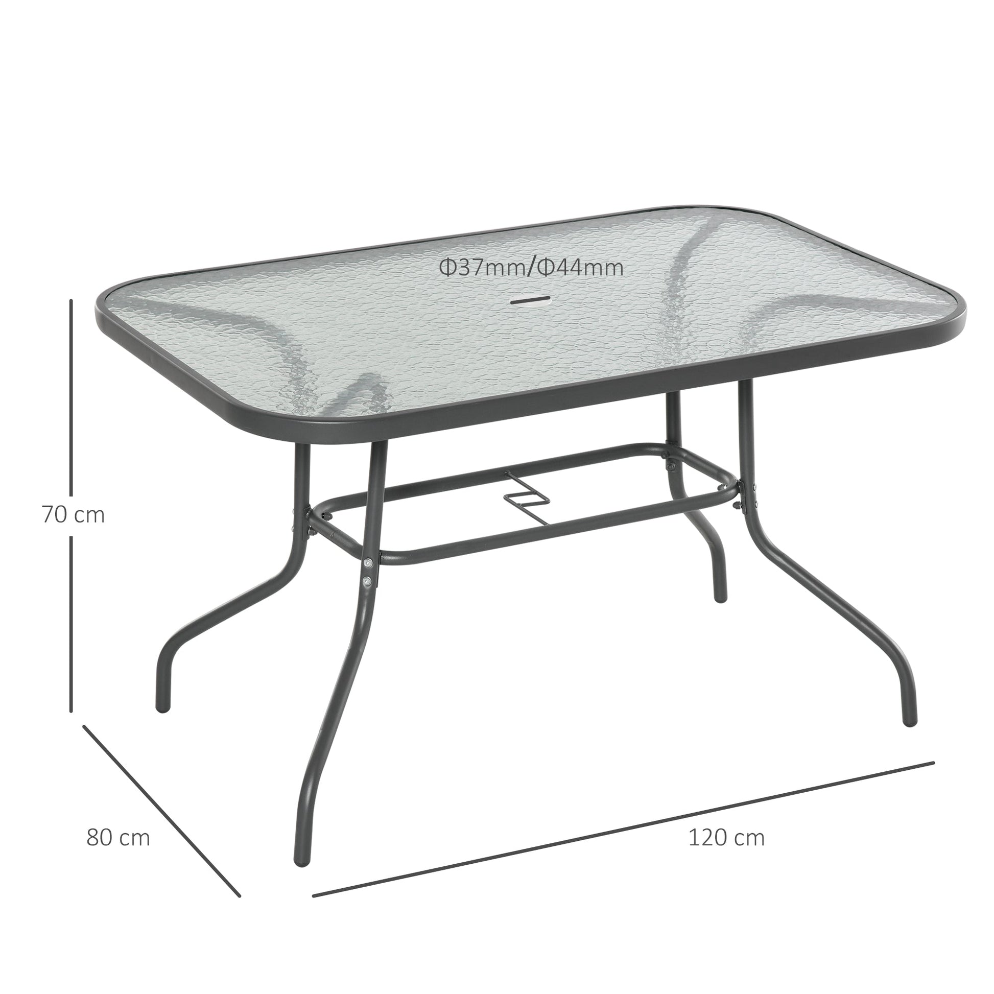 - ?37mm / ?44mm parasol hole in the middle of tabletop, keeps a sun umbrella upright and in place for shade and protection from direct sunlight