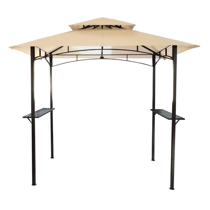 This wonderful steel frame gazebo is ideal for entertaining your guests and is perfect for using as a sun canopy to keep cool in the shade . This gazebo features a water resistant canopy and 2 side shelves, which are ideal for both drinks and snacks. The frame is made of durable powder coated steel and the double top canopy allows for better air flow. This shelter can be easily assembled or disassembled, and can be bolted to decking or concrete floors.