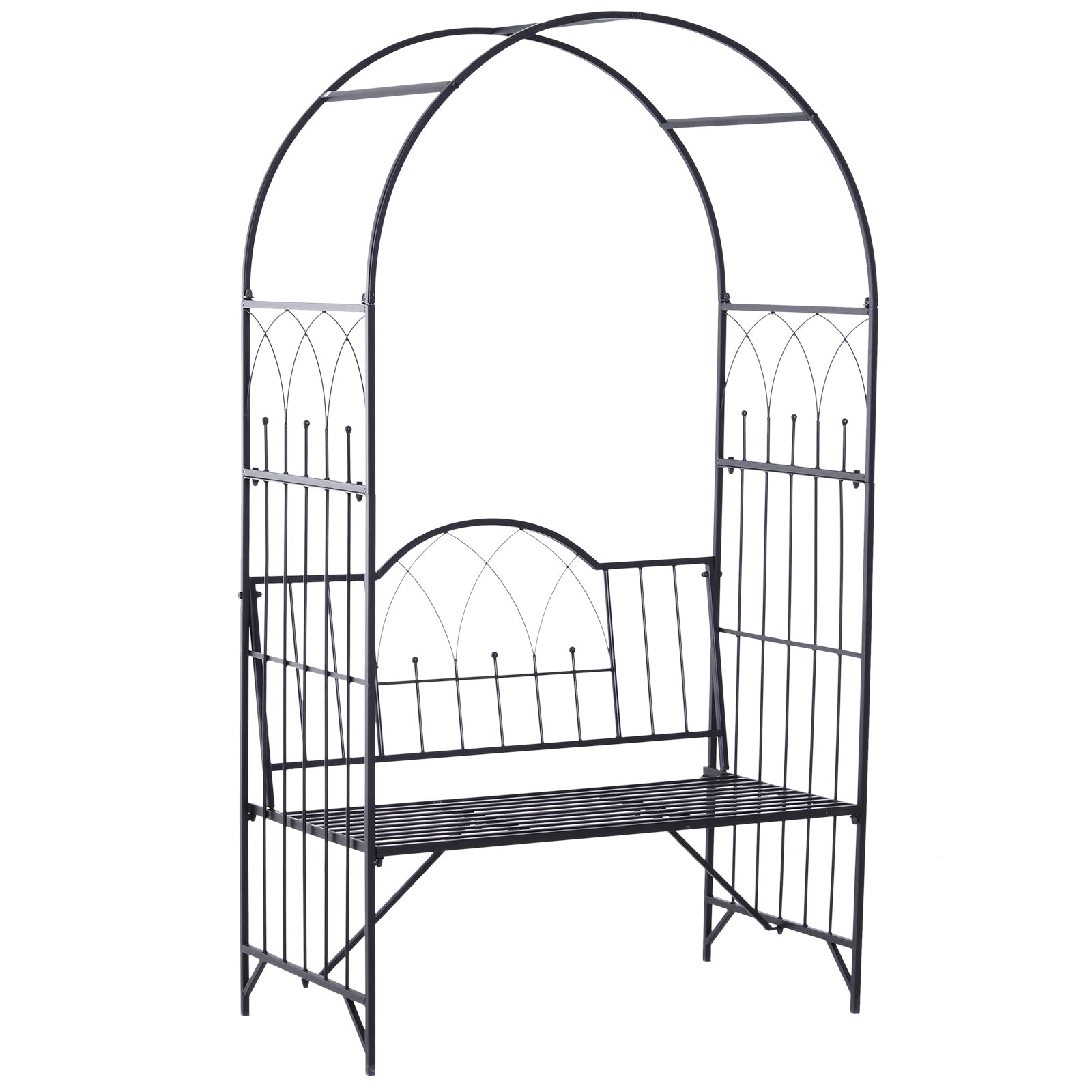 Garden Metal Arch Bench Outdoor Patio Rose Trellis Arbour Pergola for Climbing Plant Antique Style 2 Seater Chair