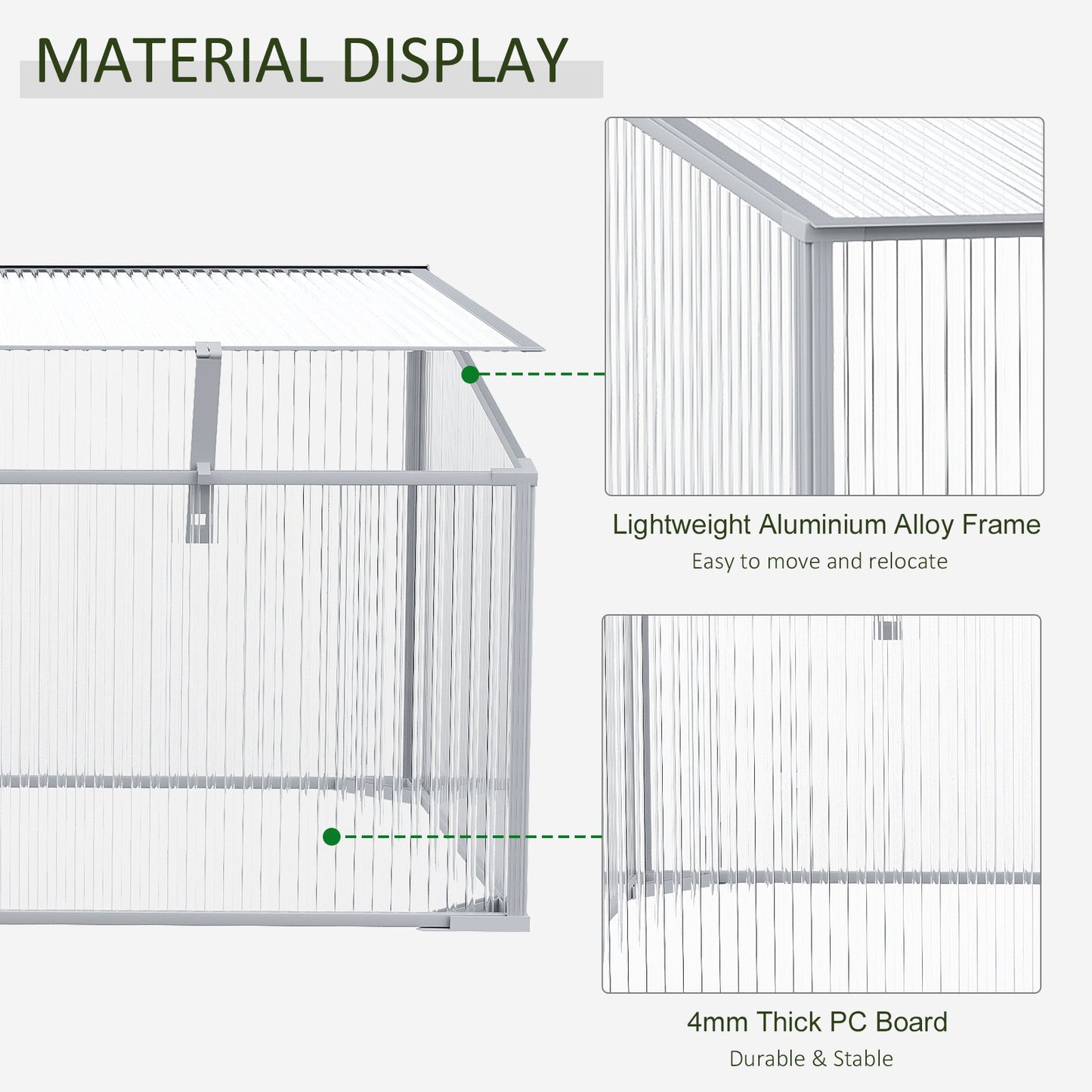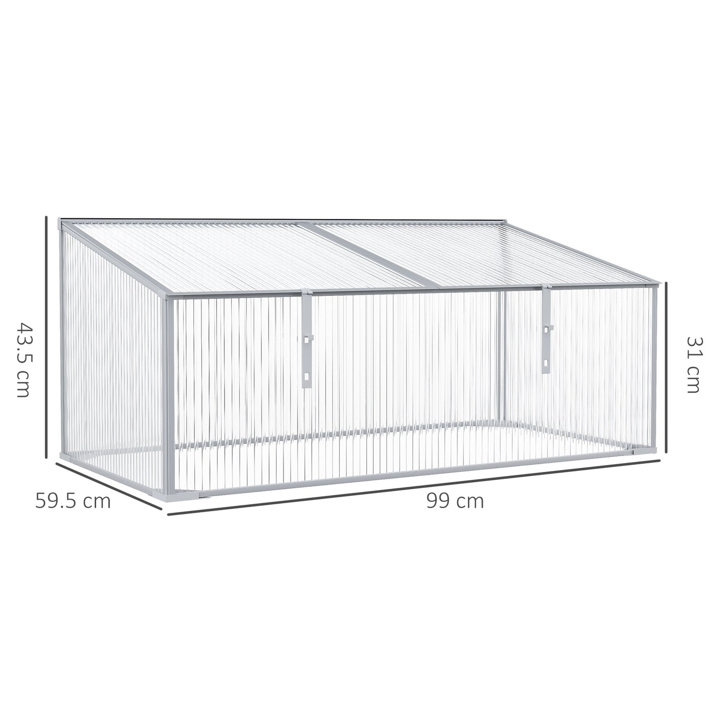 Garden Polycarbonate Cold Frame Greenhouse Grow House Flower Vegetable Plants Bed Aluminium Frame 99L x 60W x 44H cm