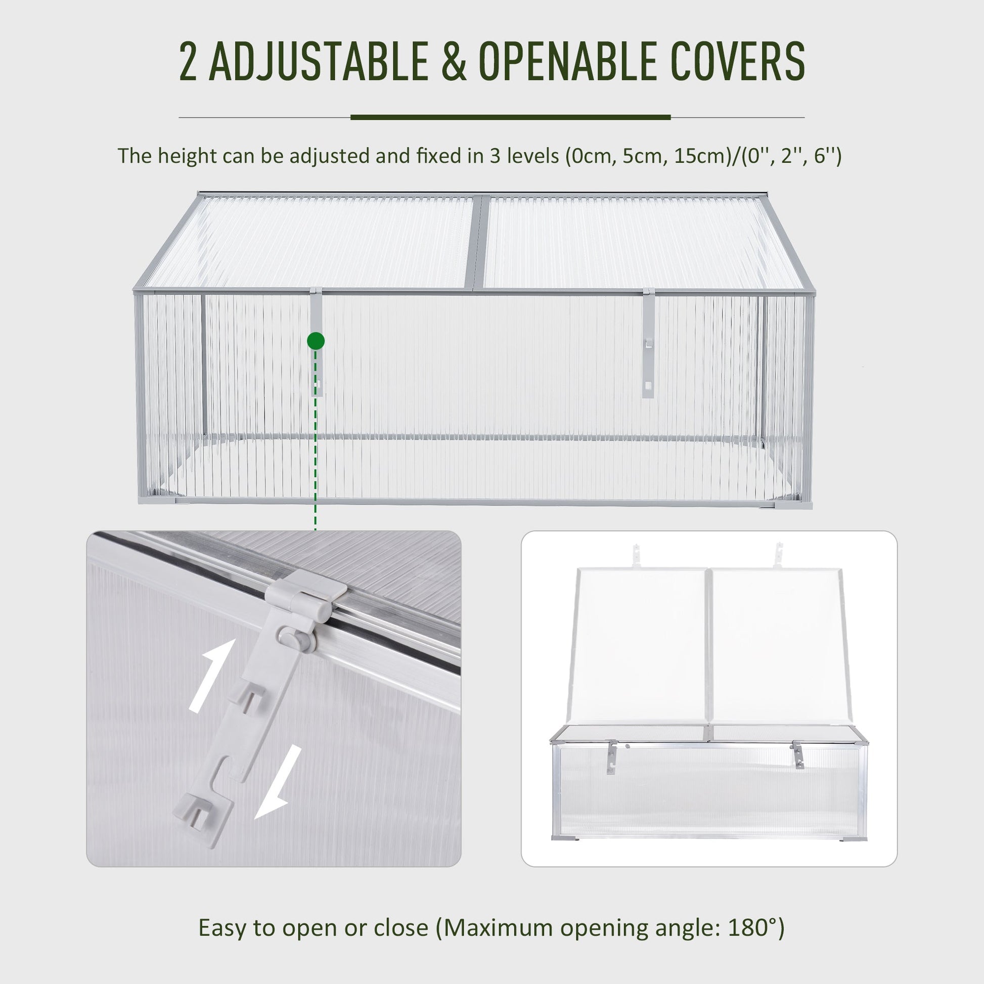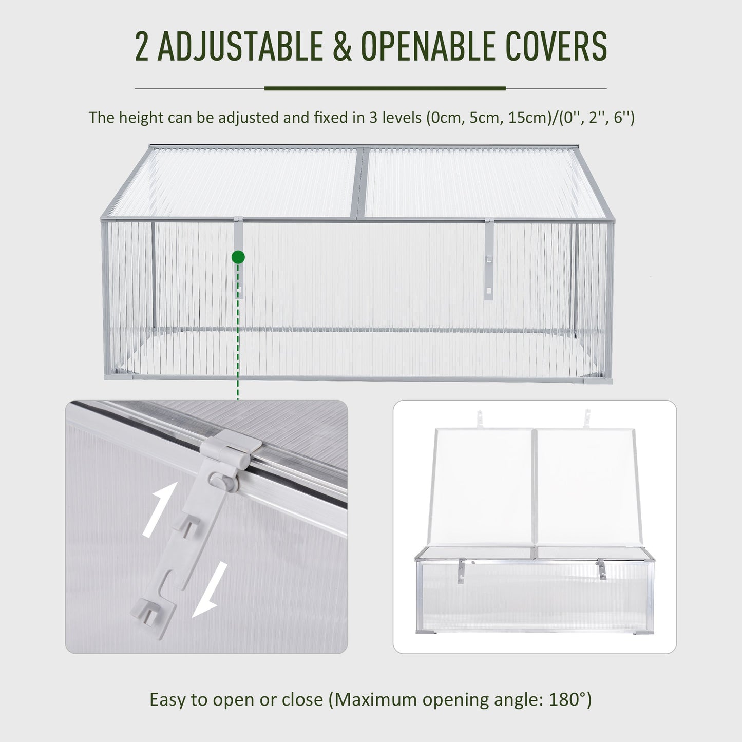 - Height and angle of top covers can be adjusted to manually control the inside temperature of greenhouse