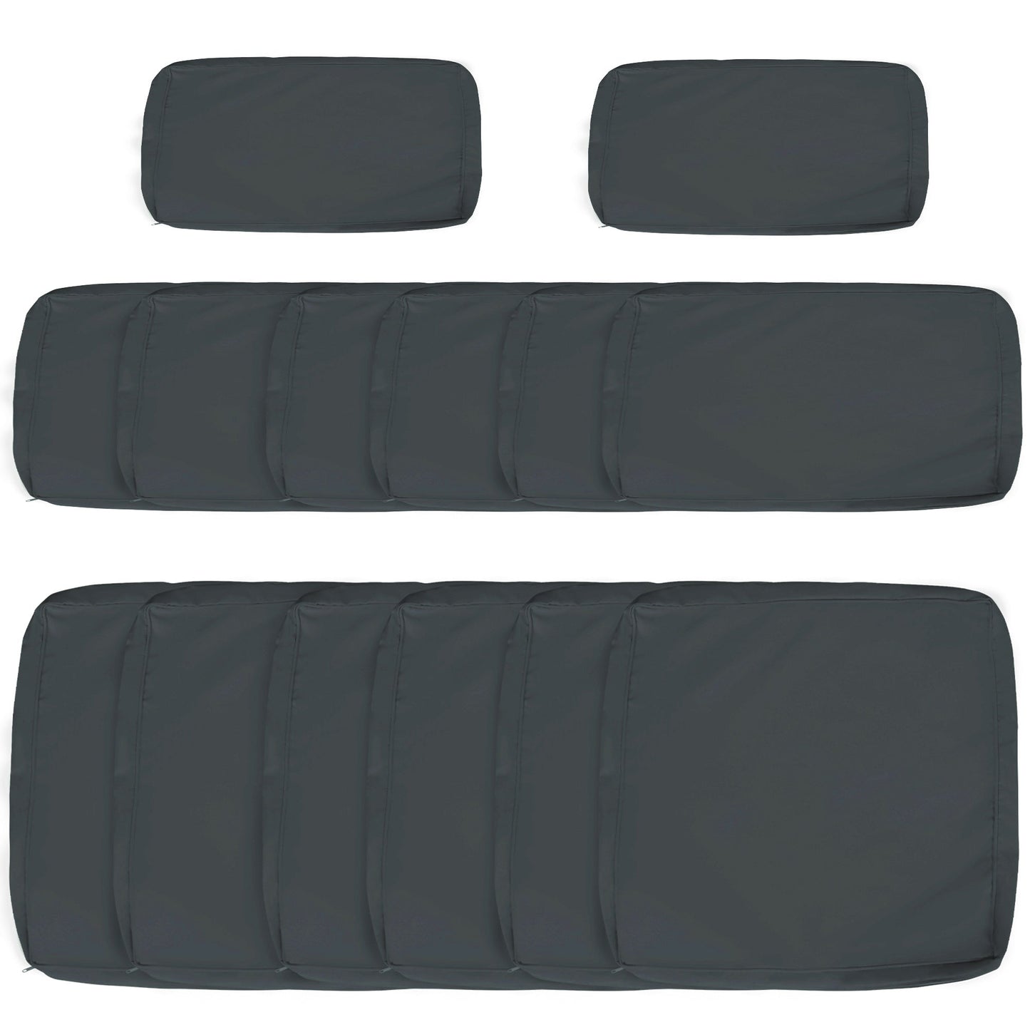 - Pack of 14 cushion covers: six seat covers, six large back covers and two small back covers