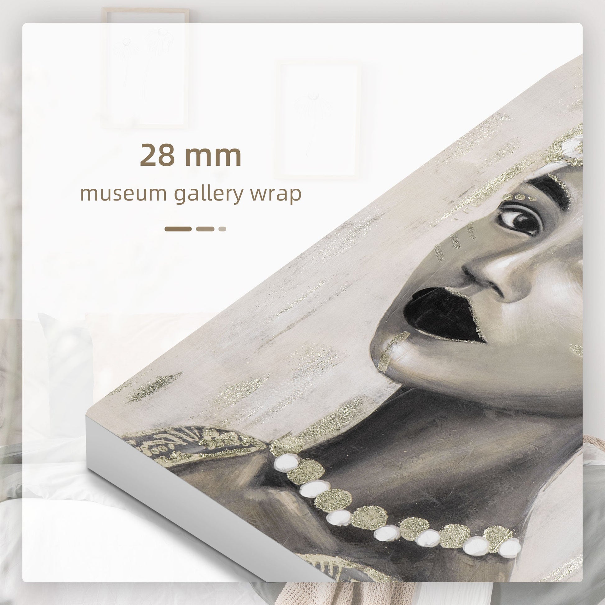This beautiful piece of art brings any room to life. From HOMCOM, it's a handmade prints for walls of a woman in traditional African attire. Wearing a headwrap and glamorous jewellery, which is beautiful portrayed with a glistening gold-tone colour. It comes with hooks, so it can be hung up straight away. Pictures for living room is a decorative piece, which sets the tone and brings a vibrant feel; a great addition to your home.