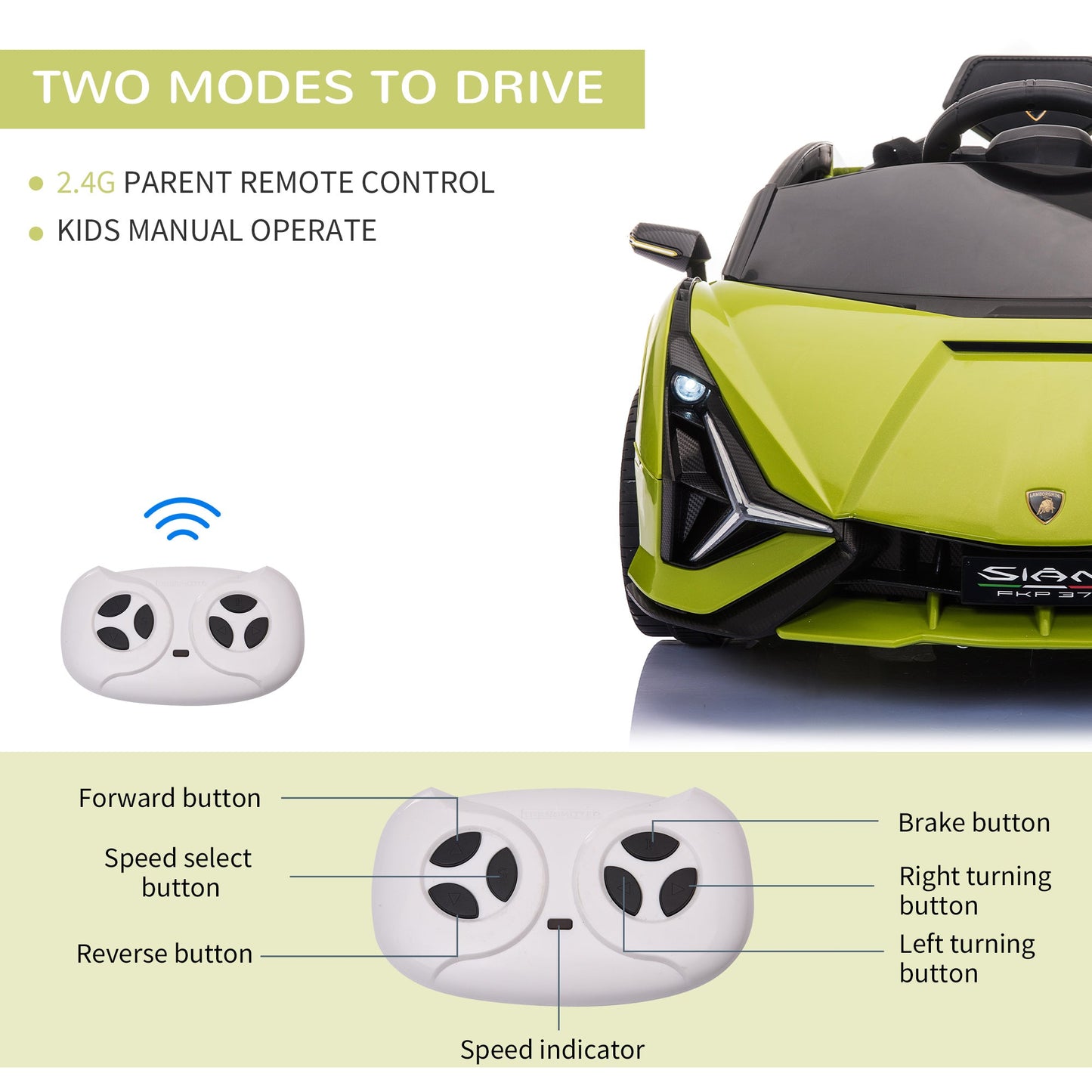 Can be driven by kids, adults can control by the remote