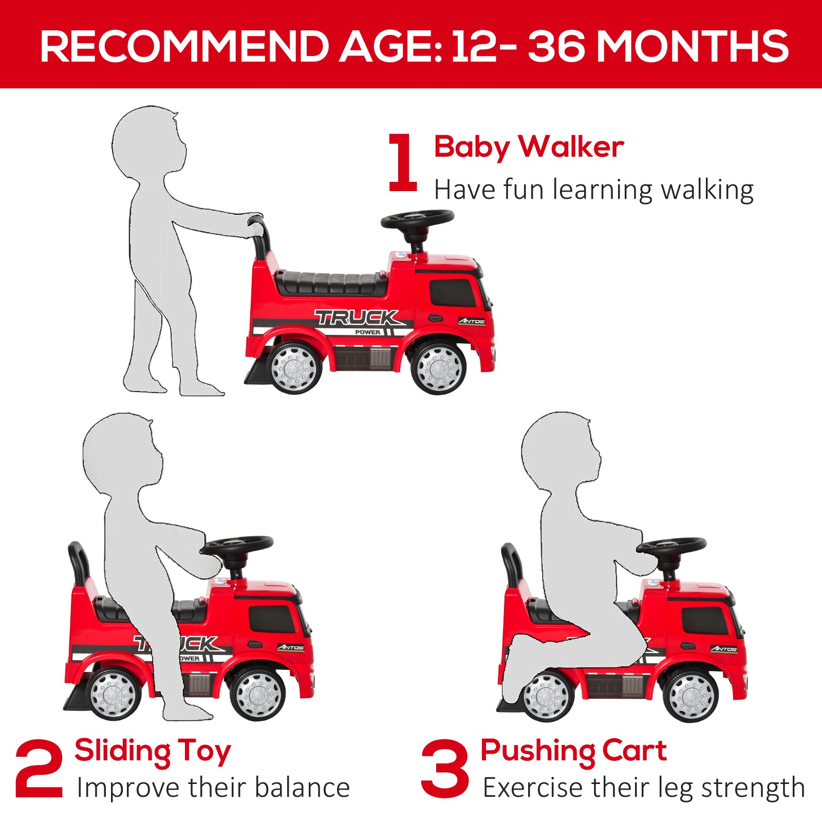 3-in-1 design of a Foot-to-Floor walker, a slider and push-along ride on