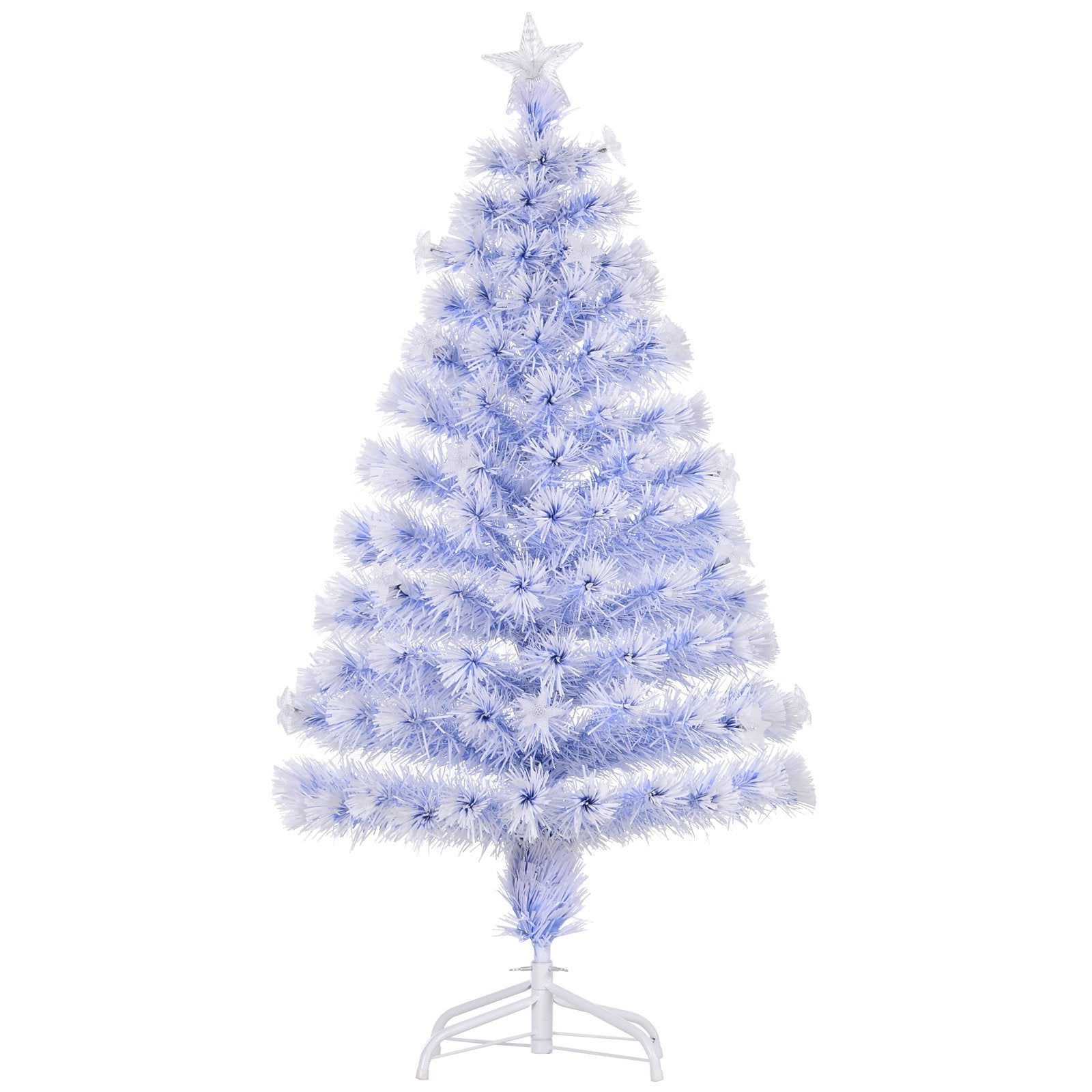 Homcom 4FT Artificial Fibre Optic Christmas Tree Seasonal Decoration with LED Lights Pre-Lit Easy Store White Blue