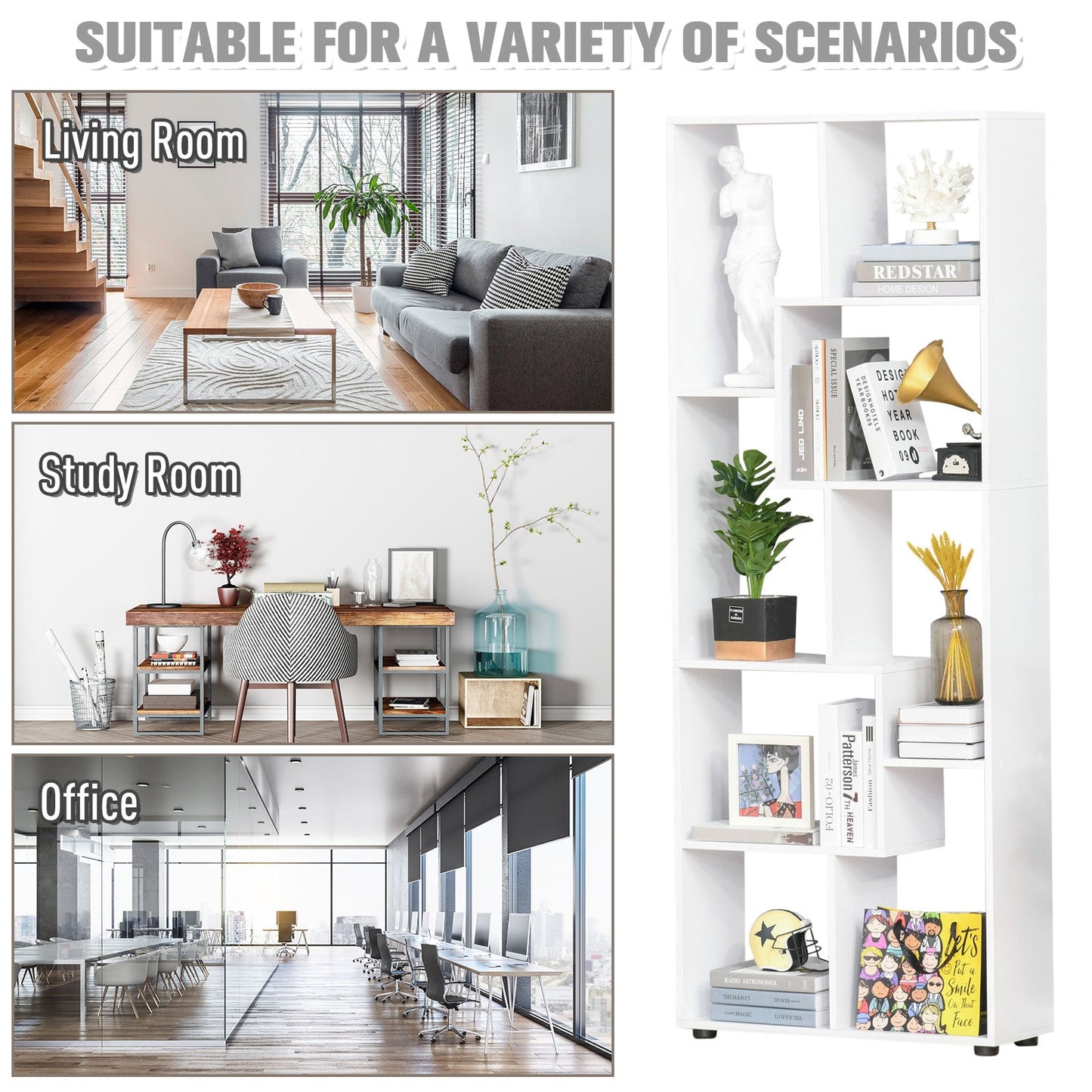 Homcom 8-Tier Freestanding Bookcase W/ Melamine Surface Anti-Tipping Foot Pads Home Display Storage Grid Stand Bedroom Living Room Furniture Modern Style - White