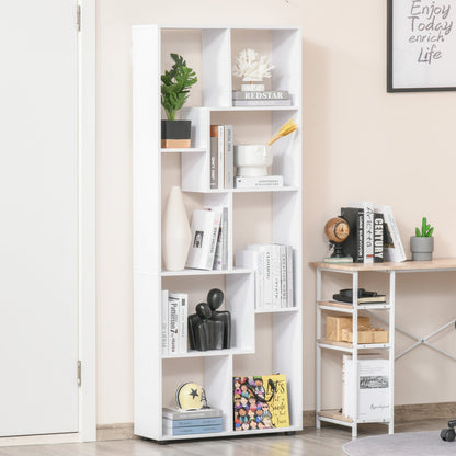 A must for all the book lovers out there let this bookshelf from Homcom let you show off your impressive collection with pride. Using thick particle board for a structure which supports up to 80kg, the frame is crafted into a simple design, where eight differently sized and separate compartments are intertwined into each over for a unique look youll love for years to come. On the bottom, foot pads are placed to promote balance and protect your floor, whilst attachments can be found on the back to secure to the wall keeping the unit safely in place around to prevent it tipping over. A minimal design with maximum impact.Features:A simple and beautiful design, featuring eight differently sized shelves placed together for a stand-out lookParticleboard frame for a durable and tough structure to withstand everyday useSmooth melamine coating, makes surface easy to clean and is protected against light marksEight spacious storage shelves, provides plenty of room for books, magazines, albums, photos etc.Foot pads on the bottom for protectionAnti-tipping design, bookcase back features attachments to secure to the wall perfect for homes with children and petsA fantastic piece of furniture for the bedroom, living room, study and atticMaximum weight 10kg per shelf, assembly required.Specification:Item Name: bookshelfBrand Name: HomcomColor: WhiteMaterial: E1 particleboard, Melamine stickerOverall Dimension:70L x 24W x 178H cmWeight Capacity: 10kg/per tierNet Weight: 22kgFlat Pack: YesCustom Label: 836-141WT1 x Bookshelf 1 x Instructions