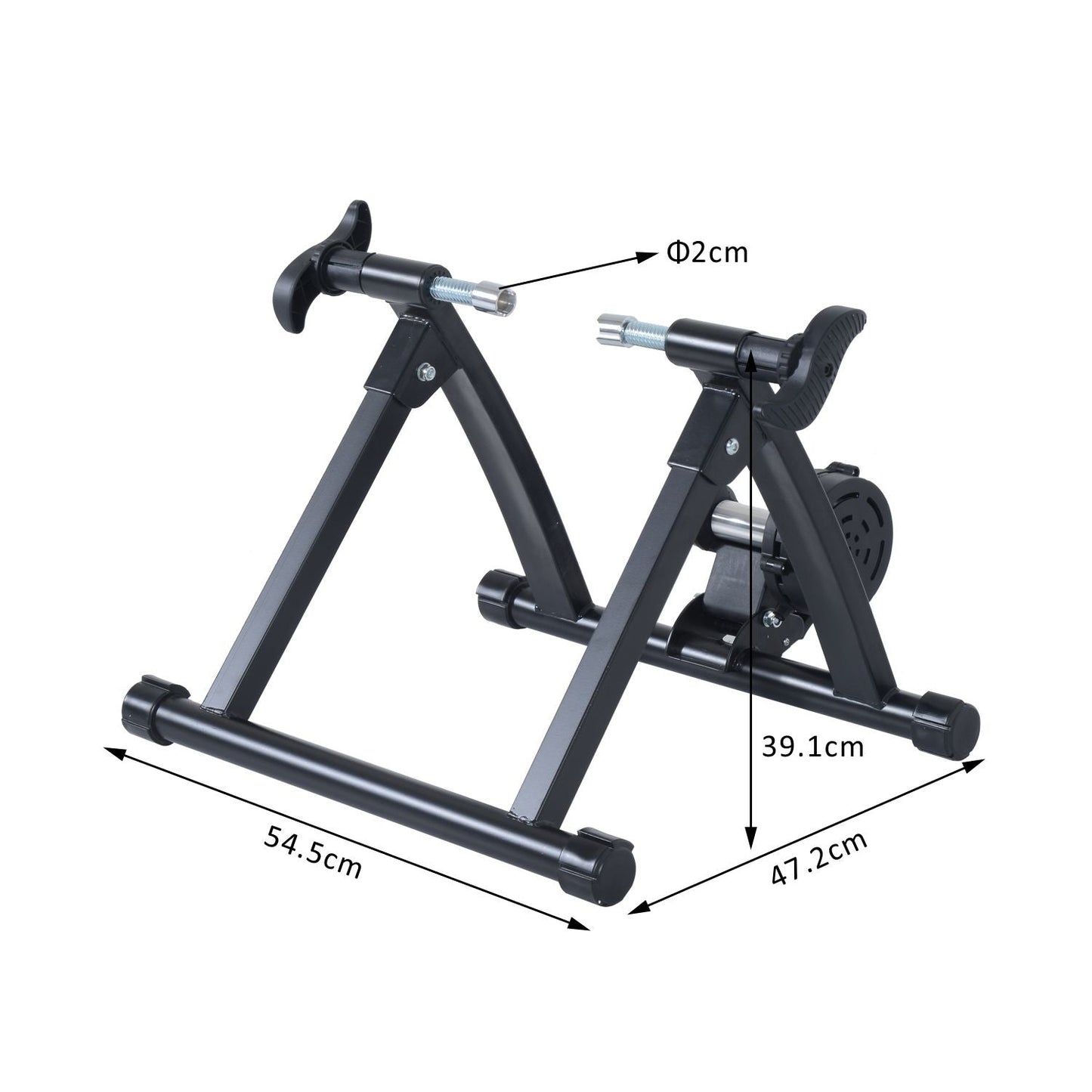 Stay in shape in the comfort of your own home with your bike thanks to this magnetic resistance trainer from HOMCOM. Made from steel for strength and support for up to 150kg in weight, it is crafted to a design which fits two 26-28” /700C tyres easily, featuring a tension knob on the back wheel to ensure it is held securely in place to stop it coming off whilst in use.