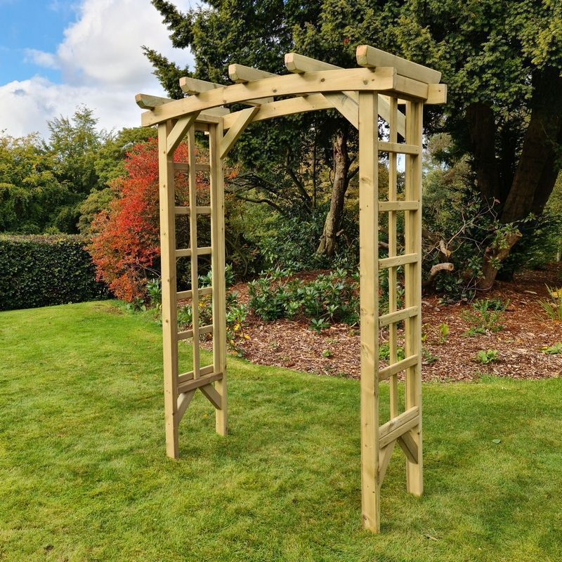The Croft Ivy 3’ Arch is an easy way to transform the feel of your outdoor pathways or entrances by adding a little grandeur to them. When paired up with a couple of planters in the Croft or similar ranges and some climbing plants, it is sure to turn that bland walkway into a beautiful new feature in your outdoor space. Made with responsibly-sourced timber and pressure treated for greater durability. Constructed with rust-resistant galvanised zinc bolts. A product proudly made in Great Britain.