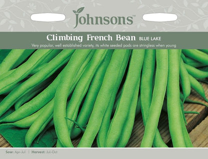 Johnsons Climbing Bean Blue Lake Seeds are a terrific variety that grows tall and produces rounded, fleshy stringless pods of delightful climbing beans. Well known for its flavour and heavy cropping; it is one of the most popular bean varieties among gardeners and farmers alike. Ideal for freezing and is high in Vitamin C. Ideal in stir fries, curries or in salads. If left on the plant their dried white seeds can be used as haricot beans. Easy to grow and versatile, peas and beans make a delicious and nutritious addition to any meal. As well as being a traditional side, legumes also provide a terrific source of protein for a vegan diet. Peas and broad beans prefer cool conditions but need to be grown in full sun or partial shade.