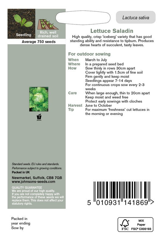 Latin name: Lactuca sativa Johnsons' premium ranges of flower and vegetable packet seeds feature captivating flowers and authentic vegetables from around the world. No matter what the size of your growing space, either a spacious garden or a limited patio, the high quality of Johnsons' seeds cater for any needs.