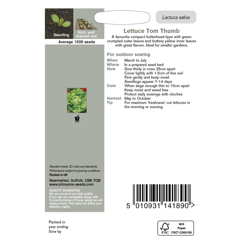 Latin name: Lactuca sativa Johnsons' premium ranges of flower and vegetable packet seeds feature captivating flowers and authentic vegetables from around the world. No matter what the size of your growing space, either a spacious garden or a limited patio, the high quality of Johnsons' seeds cater for any needs.
