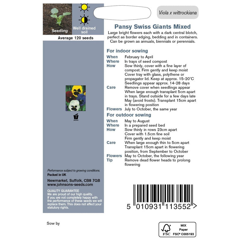 Johnsons Pansy Swiss Giants Mixed Seeds
