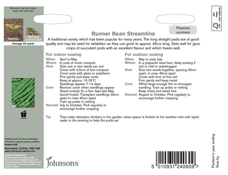 Johnsons Runner Bean Streamline Seeds