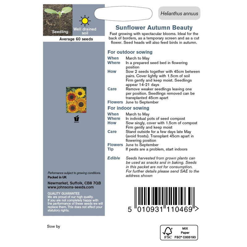 Transplanting: Will need transplanting Johnsons' premium ranges of flower and vegetable packet seeds feature captivating flowers and authentic vegetables from around the world. No matter what the size of your growing space, either a spacious garden or a limited patio, the high quality of Johnsons' seeds cater for any needs.