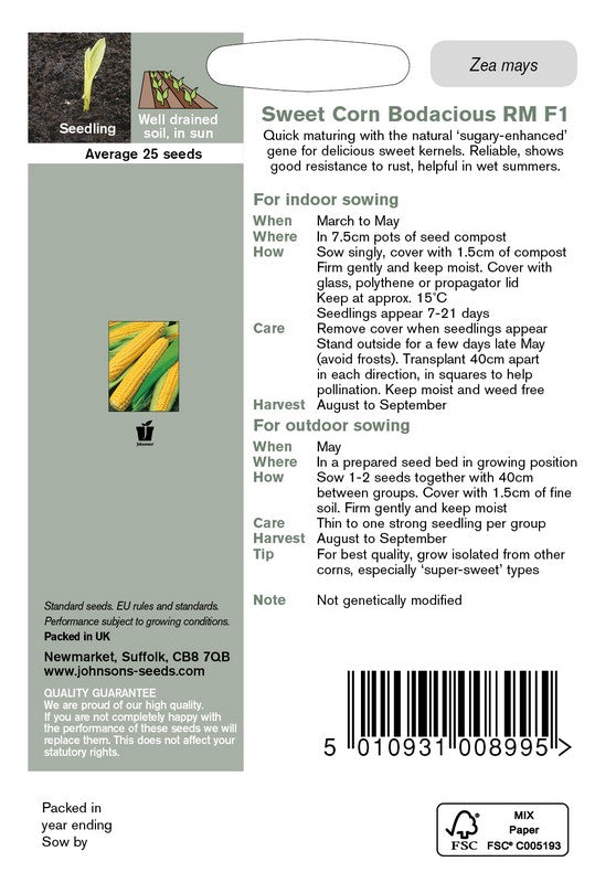 Advice: For best quality, grow away from other corns especially 'super-sweet' types