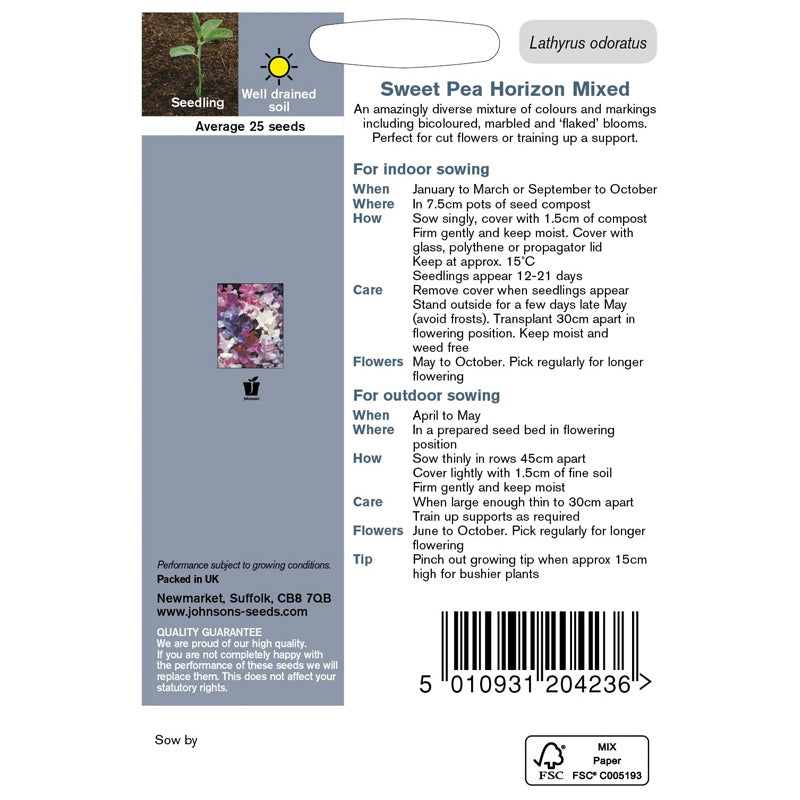 Johnsons Sweet Pea Horizon Mixed Seeds