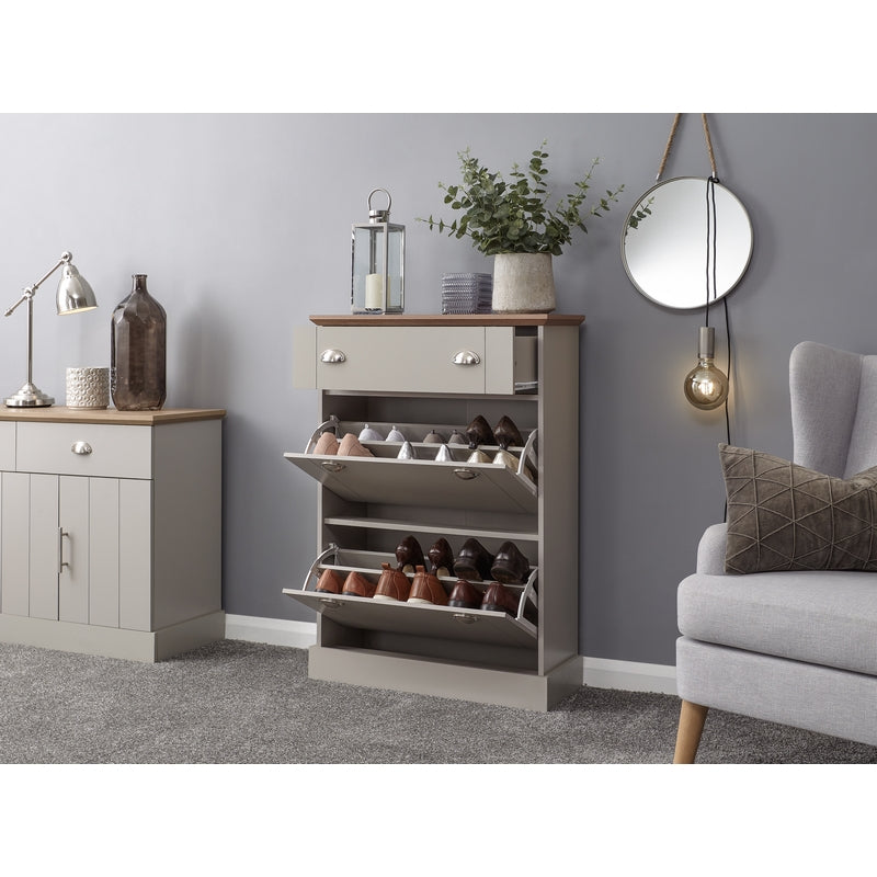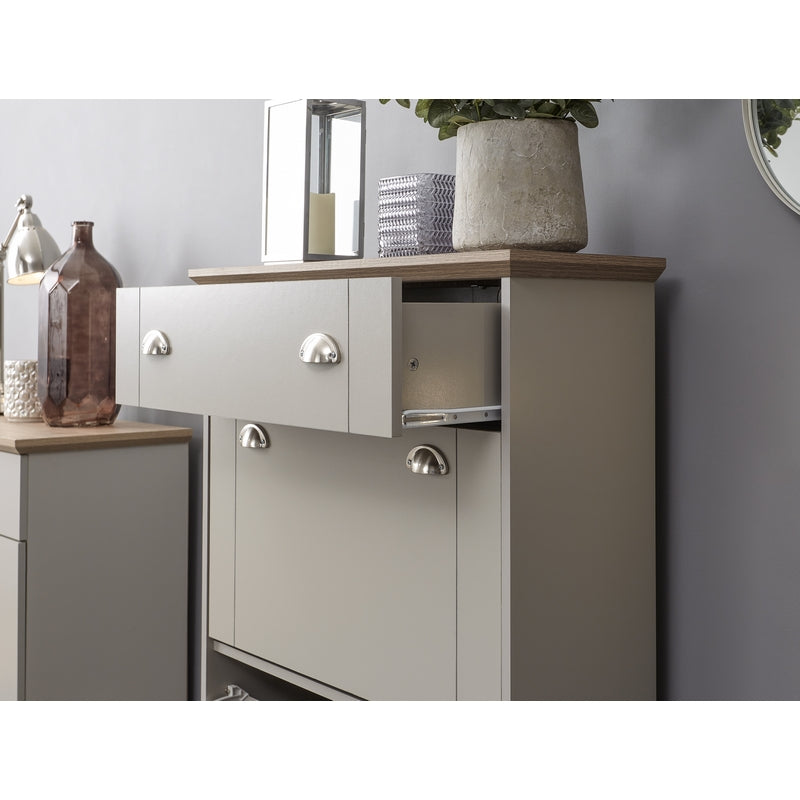 Kendal Tall Shoe Storage Grey 2 Doors 2 Shelves 1 Drawer