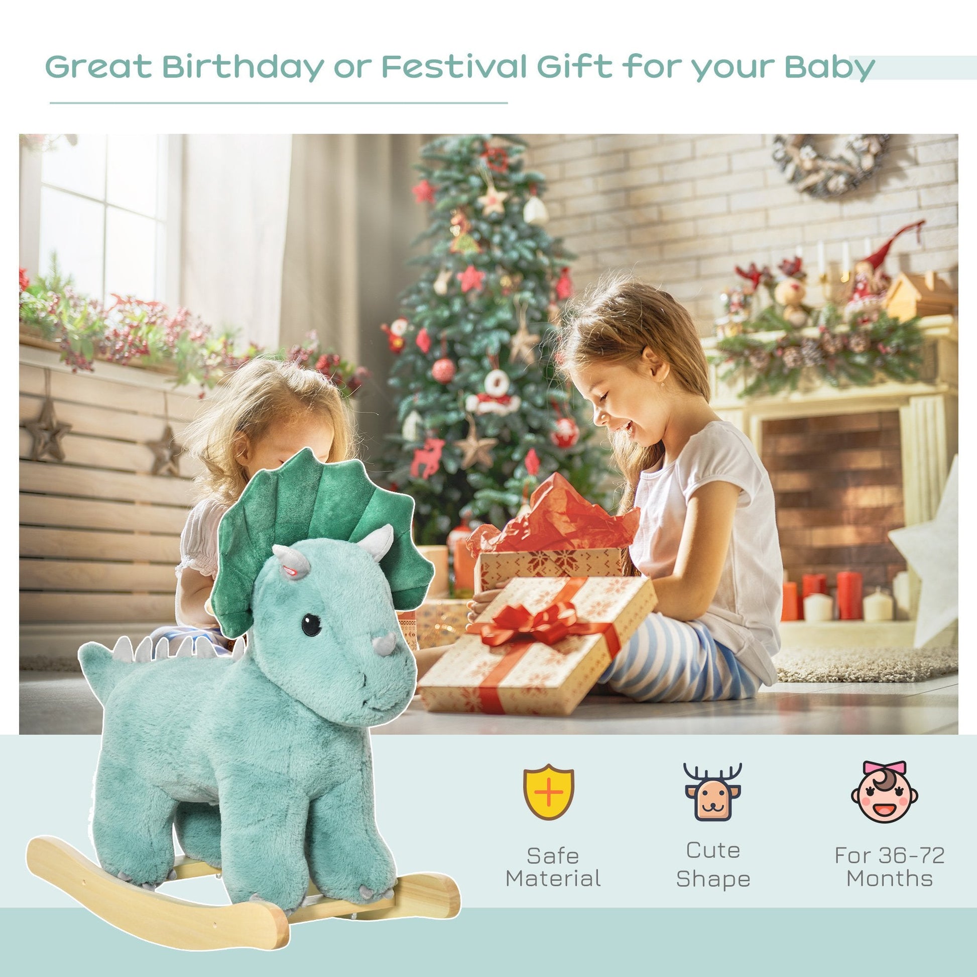 Kid Plush Ride-On Rocking Horse Triceratops-shaped Toy Rocker Realistic Sound