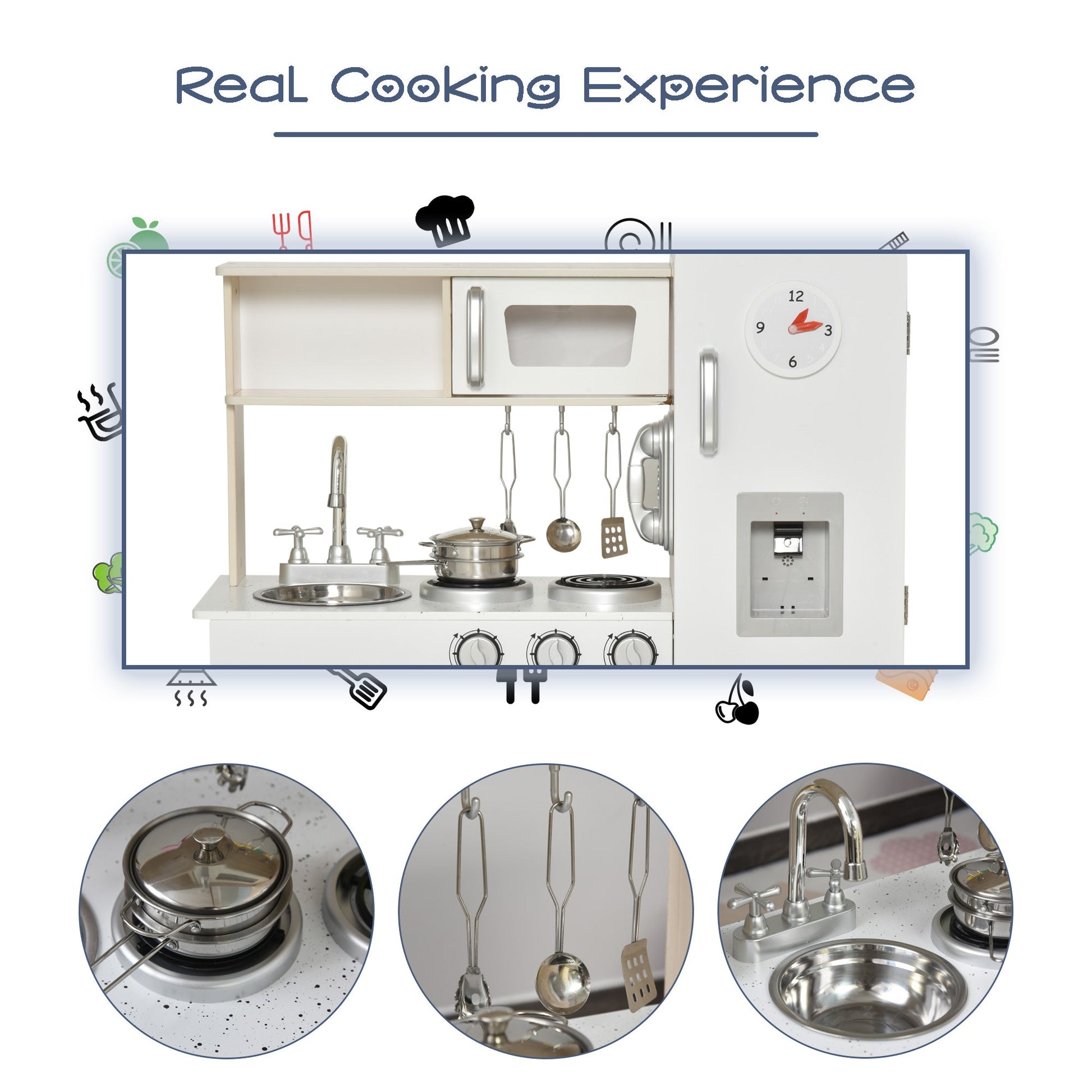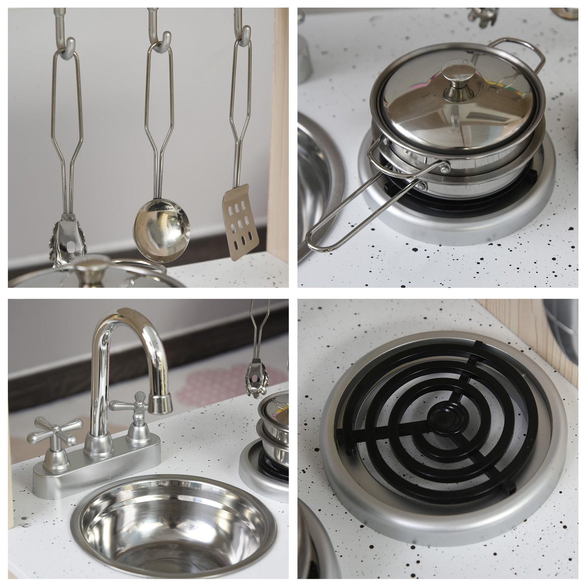 - Interactive sink, induction cooker, telephone and water dispenser for extra fun and realism