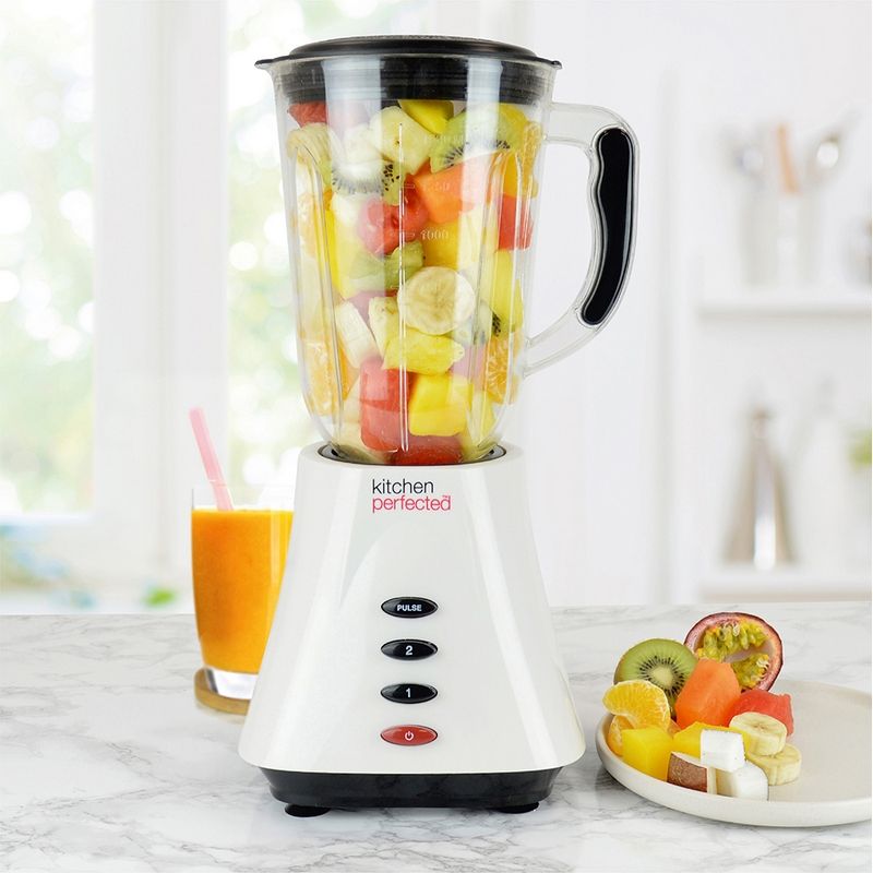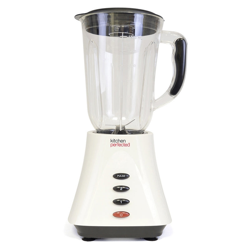 This electric kitchen blender is the ideal culinary companion for knocking up perfect smoothies, slushies, soups, sauces, batters and more. The sharp stainless steel blades, 2 speed settings and pulse function will make short work of fruit, veg, ice cubes etc. With a BPA-free plastic jug, 1.5 litre maximum capacity and a 35ml measuring cup. The cream and black plastic body is durable and easily wiped clean. The separate grinder mill is great for tougher items like spices and coffee beans. Power: 500 watt.