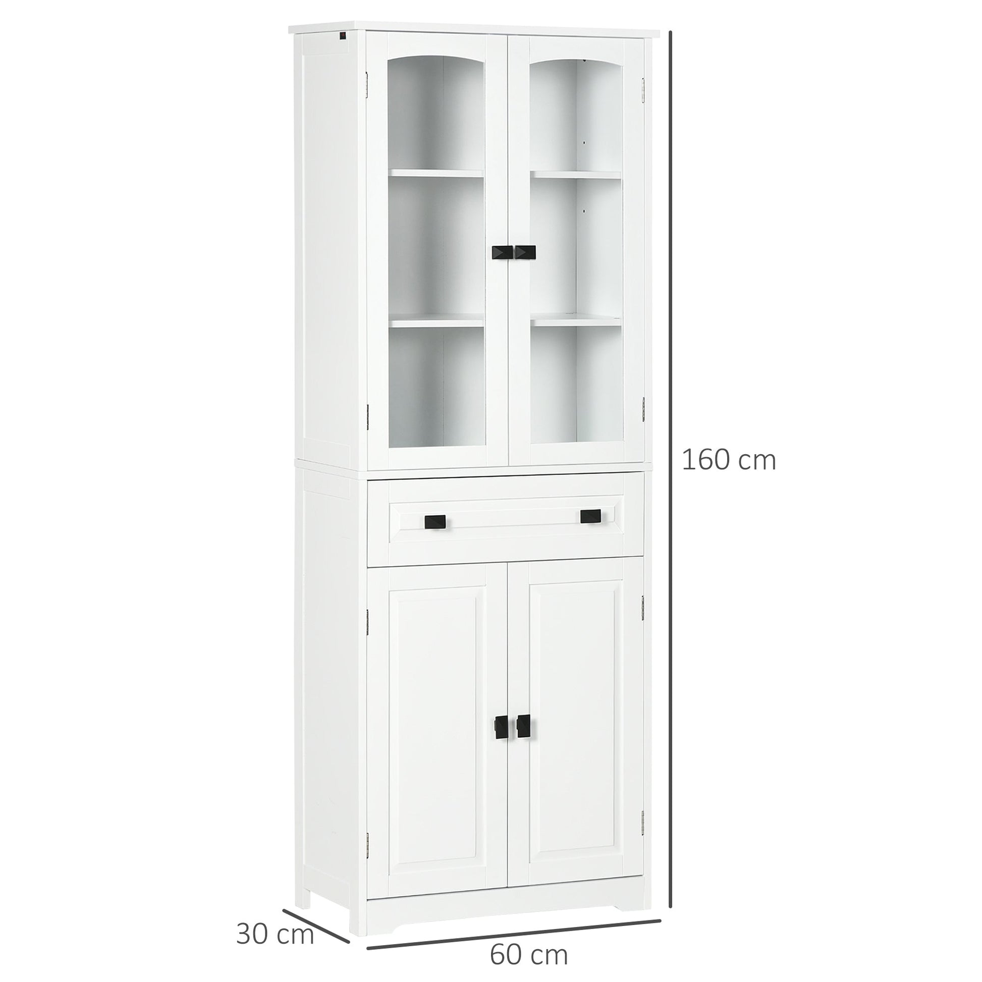 Running out of kitchen space? This HOMCOM is an excellent solution to your storage woes. A tall, narrow design is great for smaller spaces. Comes with a top and bottom cupboard, with a middle drawer; five adjustable shelves to fit into differently-sized pieces. Made from particle board for a durable structure, with anti-tipping straps included for safety. A white design, with black handles for a stylish monochrome look.