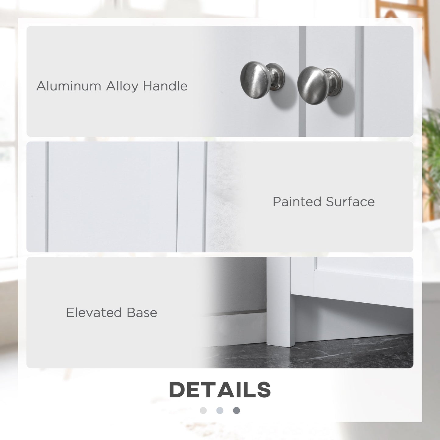 A simple bathroom unit made ready for your home space. This kleankin bathroom furniture comes in a corner design, with a sleek and smooth finish. There are 3-tier open shelves and a cupboard for separate storage areas. Two adjustable shelves can be moved to three different positions, making it easier to fit different-sized items. The elevated base helps prevent moisture from damaging the bottom. Bring this space-saving small cupboard home to organize your space!