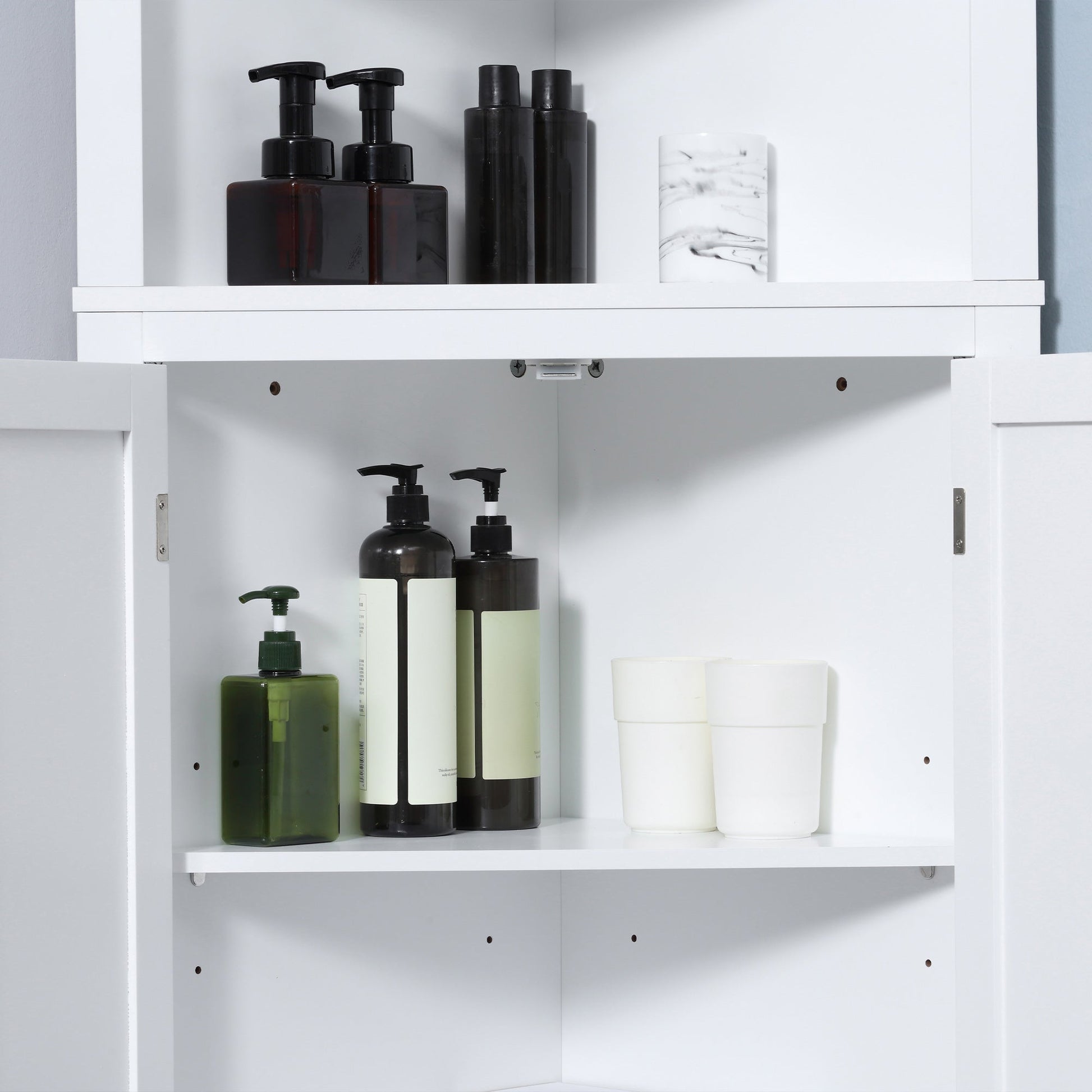 - Consists of two 3-level adjustable shelves to provide more choices for placing diverse essentials