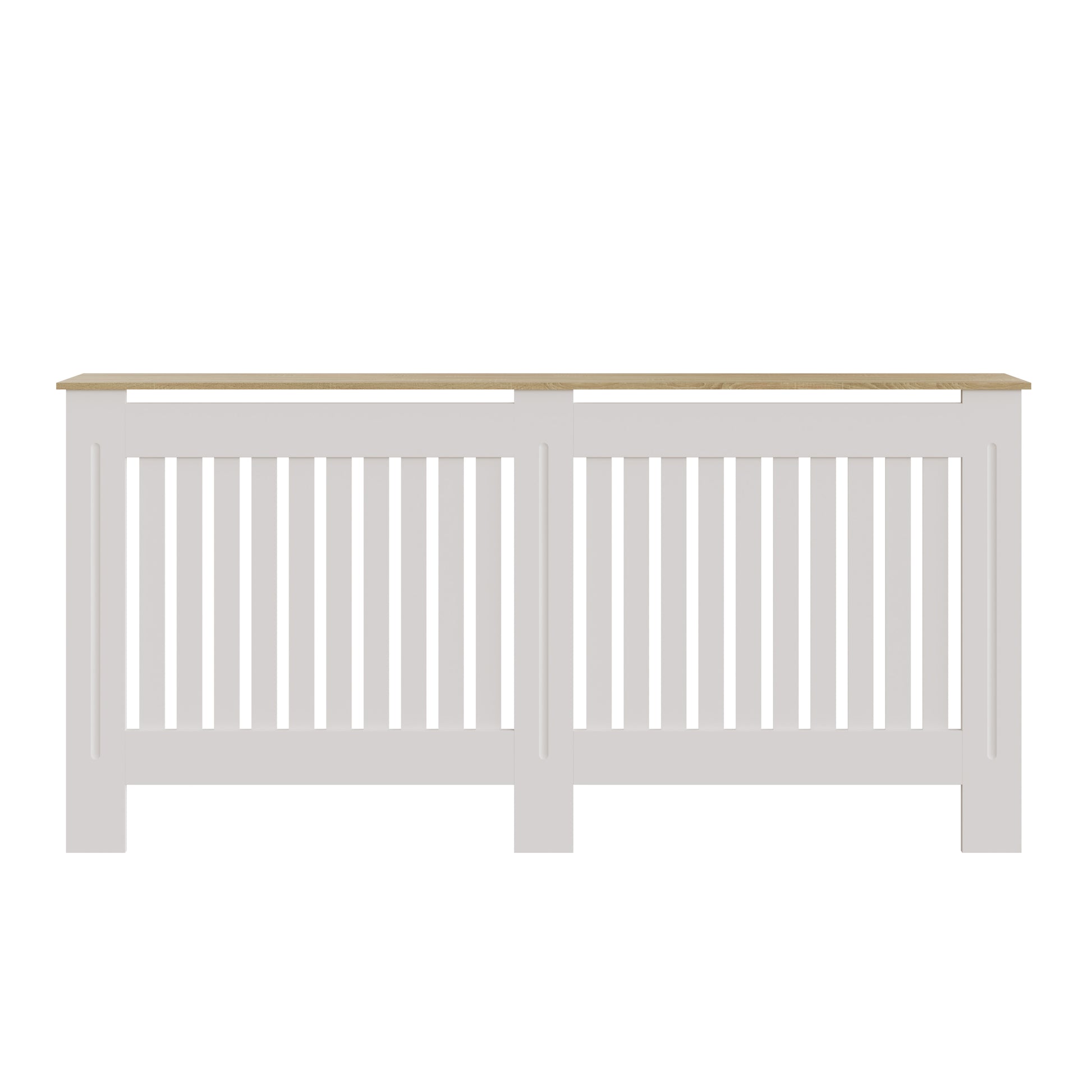This radiator cover from GFW offers great quality at a very competitive price and is perfect for anyone looking to enhance the surroundings for themselves, their families and their guests. The perfect way to conceal unsightly radiators while protecting young children from harm, this piece will make an exceptional upgrade to any living area. With a stylish white & oak colour scheme that will look sleek and sophisticated.