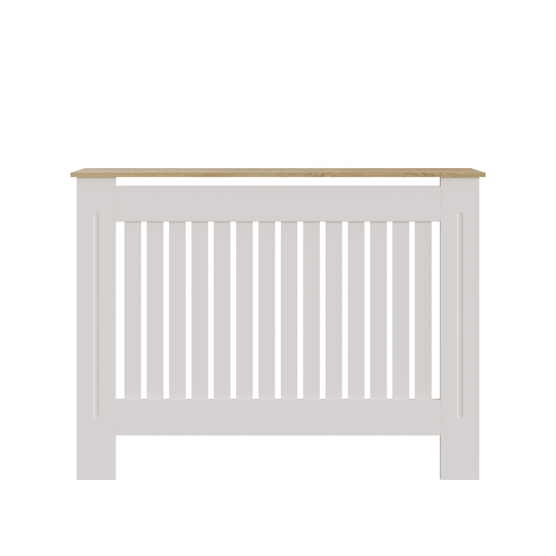 This radiator cover from GFW offers great quality at a very competitive price and is perfect for anyone looking to enhance the surroundings for themselves, their families and their guests. The perfect way to conceal unsightly radiators while protecting young children from harm, this piece will make an exceptional upgrade to any living area. With a stylish white & oak colour scheme that will look sleek and sophisticated.