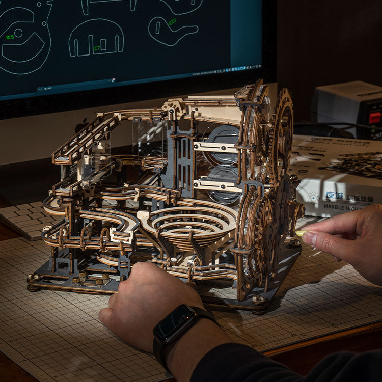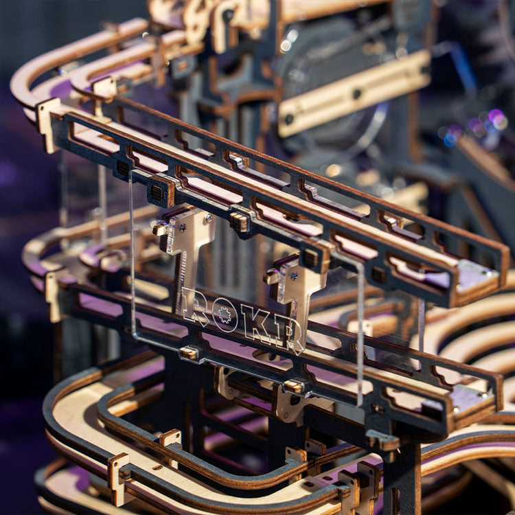 Robotime-ROKR Marble Night City is based on great human engineering. This marble run product combines the beauty of science and machines, involving so many small gadgets. It is a self-assembly 3D wooden puzzle with Tower Distributors & track race balls. Build the set and crank the handle. Watch marbles run crazy down the slopes and twisting turns.
