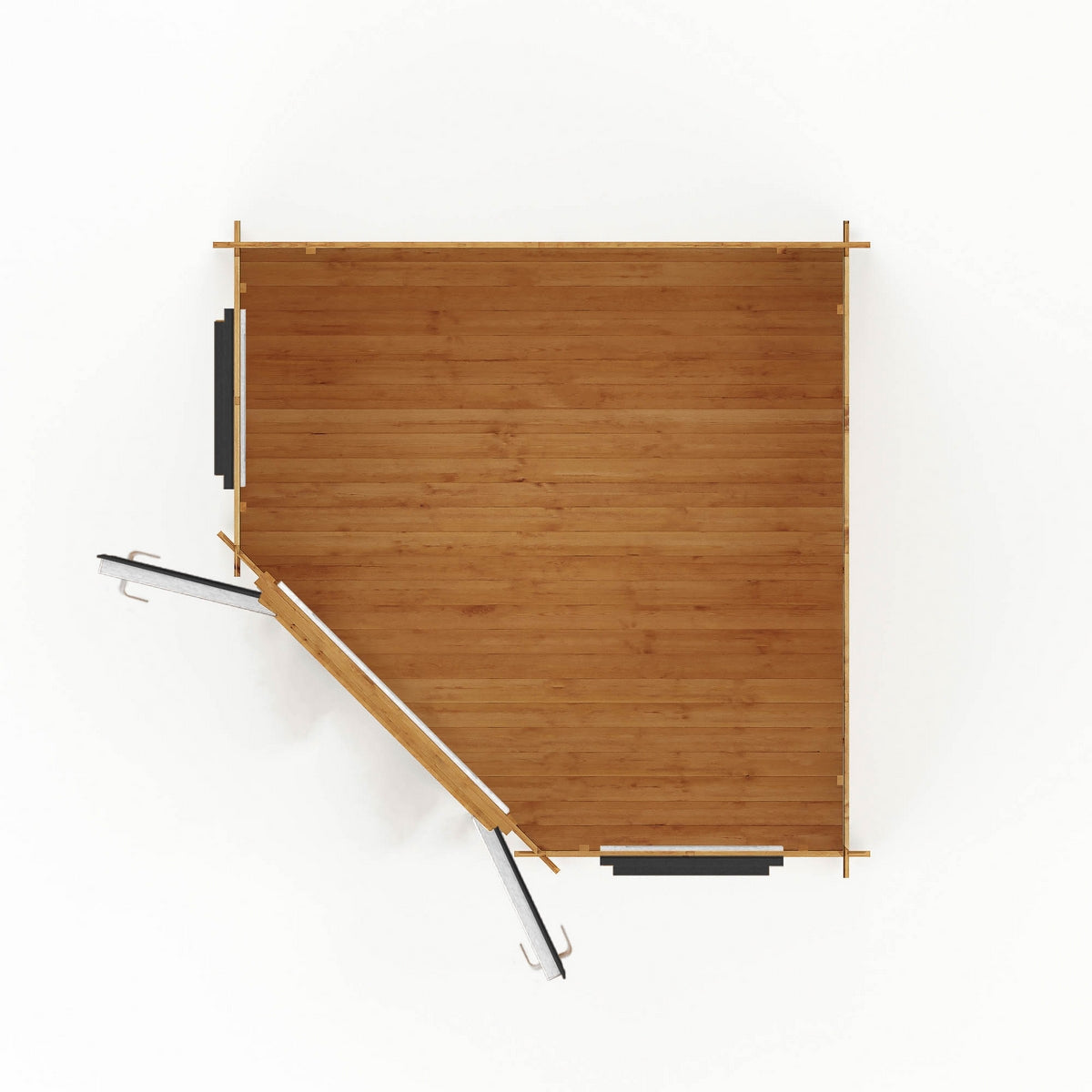 The roof and floor of the Corner Log Cabin are constructed using hard-wearing 16mm tongue and groove boards that interlock to create robust and strong panels, ideal for all your belongings. In addition, high quality roofing felt is supplied to protect your log cabin from the elements and provide longevity. An additional vent promotes airflow within the cabin, reducing the risk of moisture inside the building and enhancing overall ventilation.