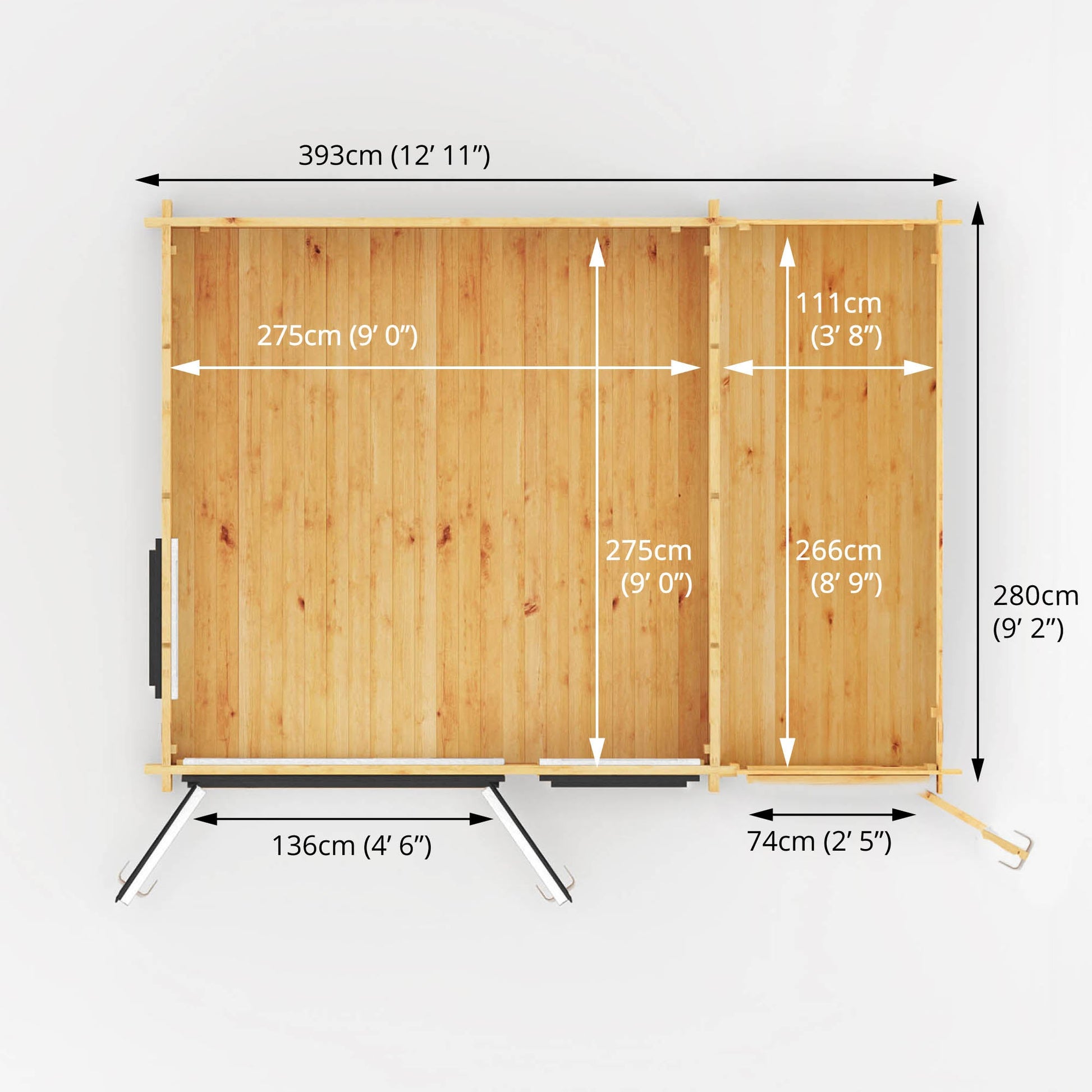 The 4.1m x 3m Home Office Elite Log Cabin with Side Shed offers a spacious and inviting garden space, ideal as a relaxing hideaway or as a comfortable and productive home office space. Its classic features, including an Alpine-inspired apex roof and bright opening windows, ensure a timeless design that effortlessly blends with your surroundings. The traditional apex roof not only adds to the cabin's charm but also enhances the interior space, allowing for the incorporation of taller furniture and decorations, creating a sense of openness and flexibility.