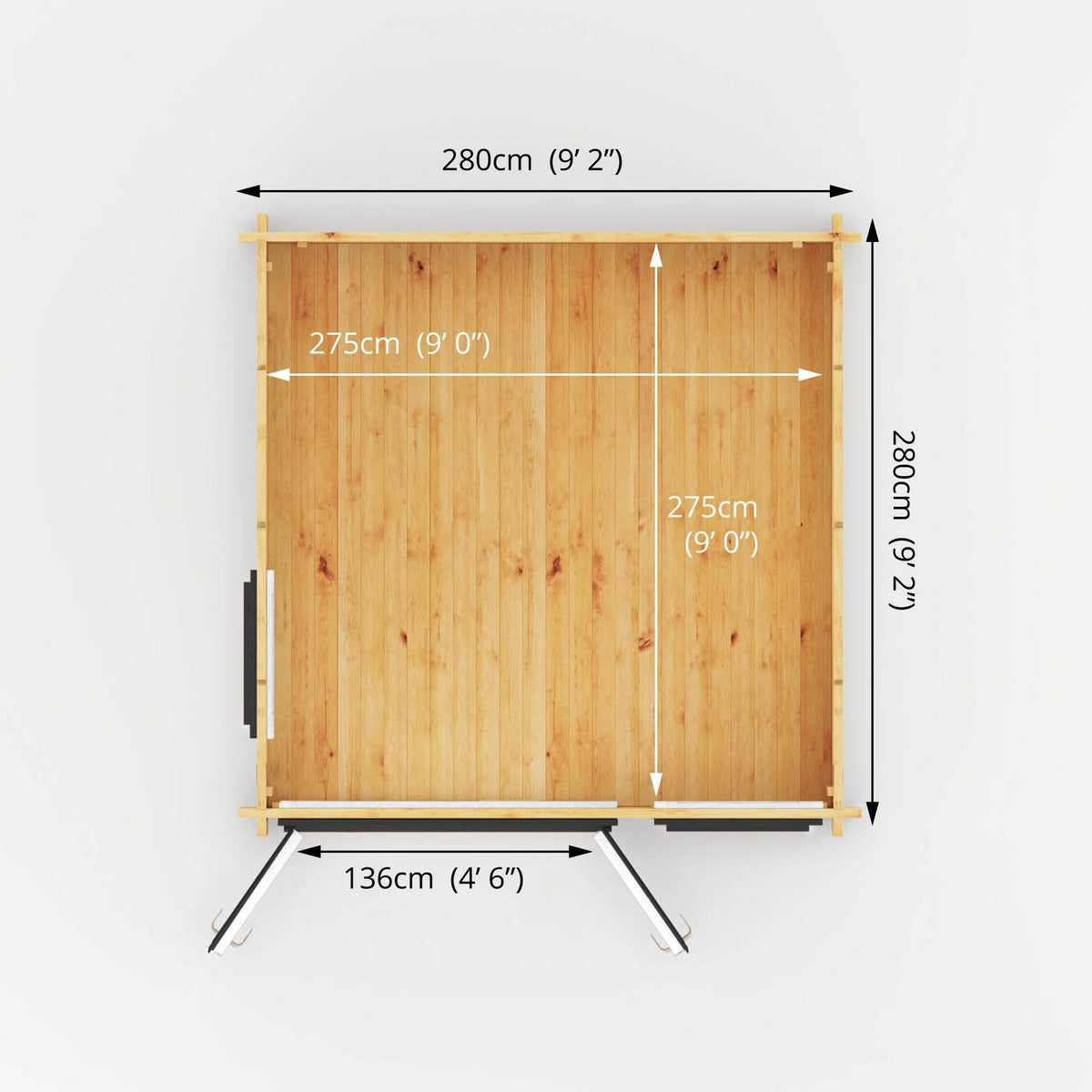 The roof and floor of the Home Office Elite are constructed using hard-wearing 16mm tongue and groove boards that interlock to create robust and strong panels, ideal for all your belongings. In addition, high quality roofing felt is supplied to protect your log cabin from the elements and provide longevity. An additional vent promotes airflow within the cabin, reducing the risk of moisture inside the building and enhancing overall ventilation.