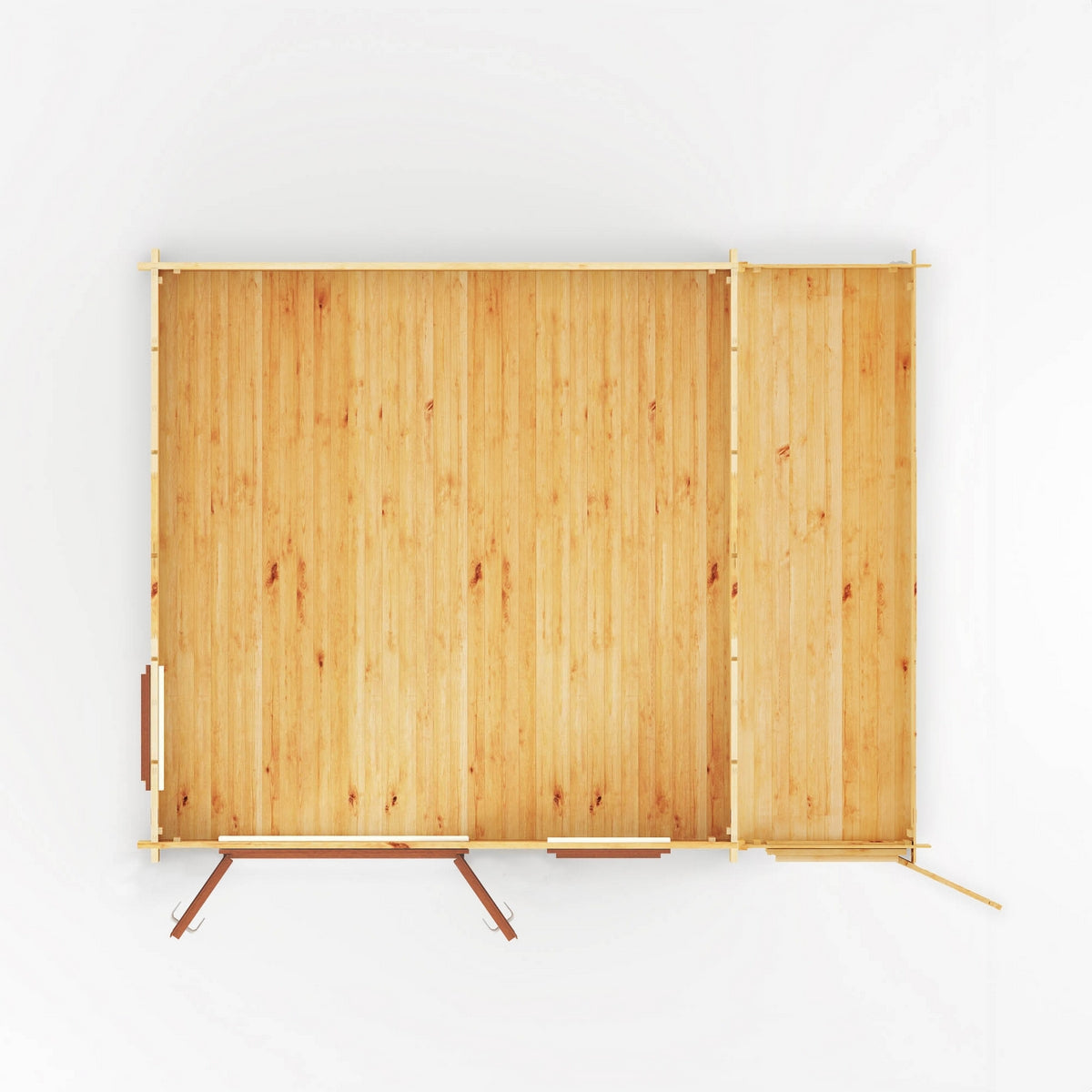 This log cabin comes with a 10 year anti-rot guarantee as standard. In order to ensure the validity of the guarantee, you will need to treat your log cabin every year with wood treatment to prevent fungal attacks and promote its long life.