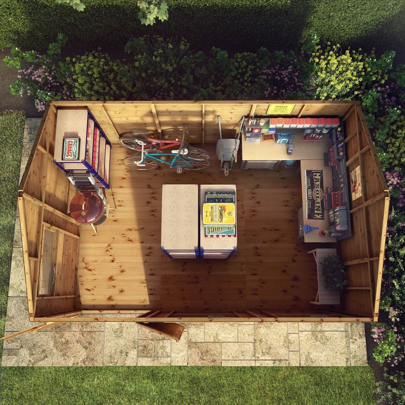The vast size of the internal space is ideal for installing workbenches and additional tool storage. A large set of double doors make accessing your workshop super easy. Making this the ideal garden building for your workshop needs. This product is part of the Premier collection.