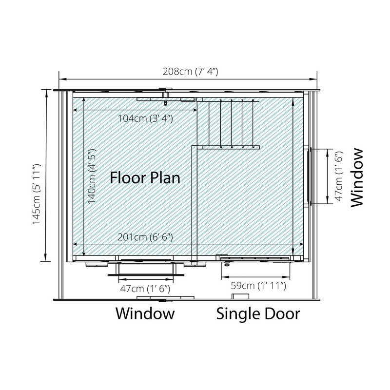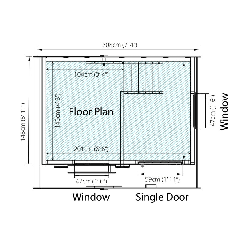 Please note - size 7' 6" x 5' 11" is approximate and based on a bird's eye view of the structure, including the roof.