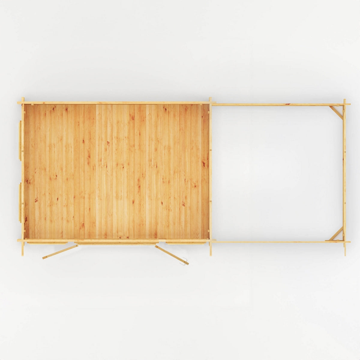 By incorporating a patio area, you can enjoy the outdoors while staying sheltered. Perfect for relaxation, it can transform into a cosy outdoor space, a hot tub hideaway, or a shaded area for children to play away from the sun. Please note, you can place the patio on either side of the building to fit your preferences. The log board thickness for the patio area is 28mm.