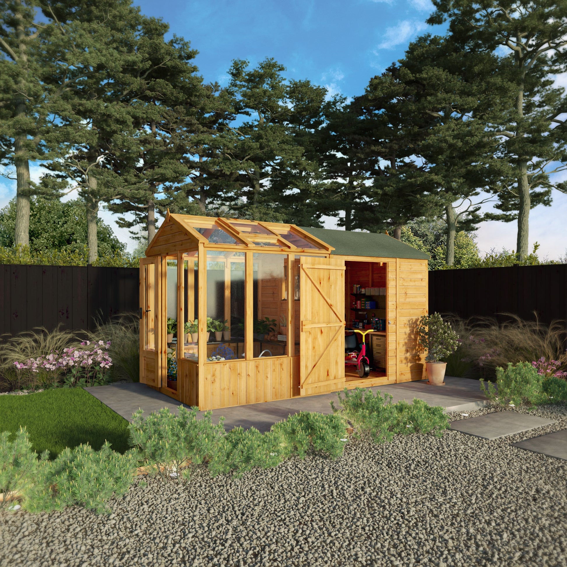 Mercia Woodsman 12' 3" x 6' 3" Apex Combi Greenhouse Shed - Premium Dip Treated Shiplap- Styrene Windows