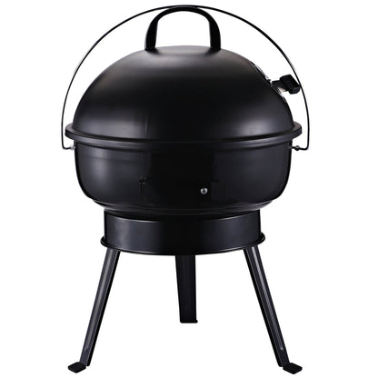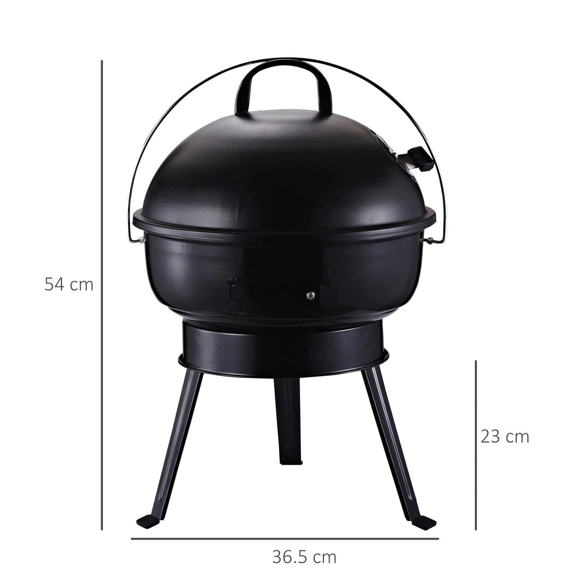 Look to this grill from Outsunny for an effortless way to deliver delicious BBQs during your outdoor adventures. Small in size for practicality, the shell is made from metal for strength, with an enamel coating which is able to withstand up to 600? - meaning you can chargrill food quickly and effectively. Inside, a 34.6cm diameter chrome grill sits inside, giving you adequate room for cooking food, with large spacing so the fire can reach the underside of your food easily, with space at the bottom of the pan to clean up the ash and charcoal easily. It is finished with three air vents on the lid, allowing you to control the flame intensity with the lid down, alongside a protective handle so you don’t scald yourself.
