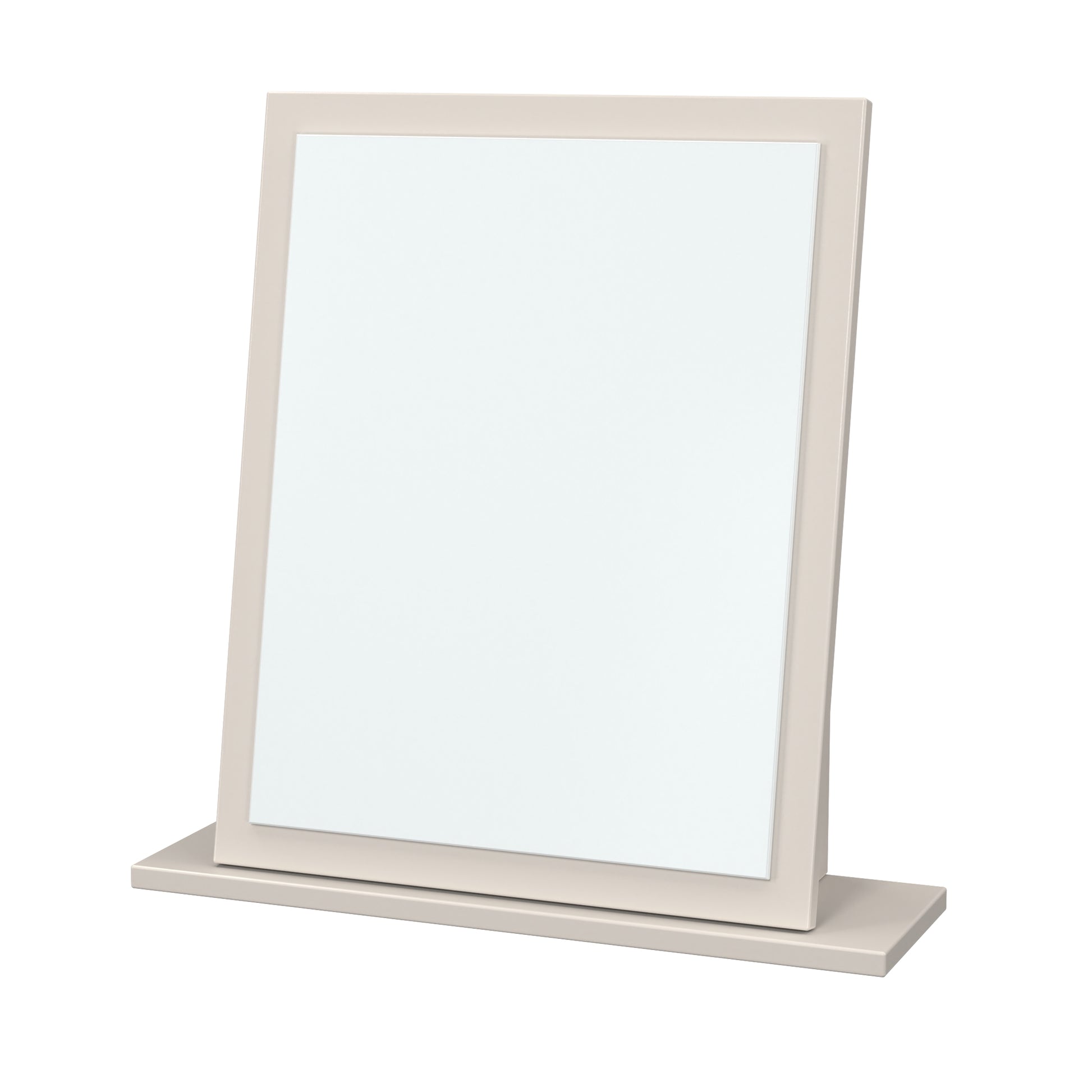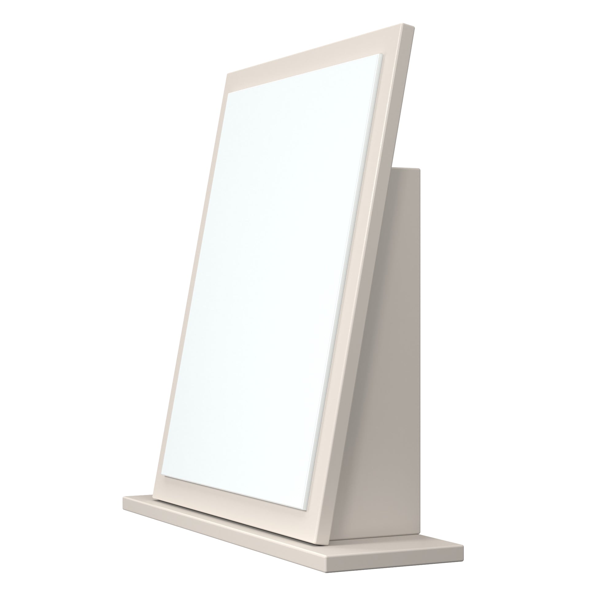 A small angled freestanding mirror with a framed edge. Ideal for any vanity unit or free standing atop a chest of drawers. This iconic range uses traditional edge finishes and wood effect tops, to create a range of classic looking furniture pieces. Contrasting finishes create the tonal variations seen here with brushed steel handle mounted on wood grained fronts. All our furniture is made to order in the United Kingdom, to the highest quality. It is delivered within 10 working days direct to your location of choice by one of our two man delivery teams, and comes fully assembled (although legs may be removed to prevent damage in transit). Part of the Kent Collection.