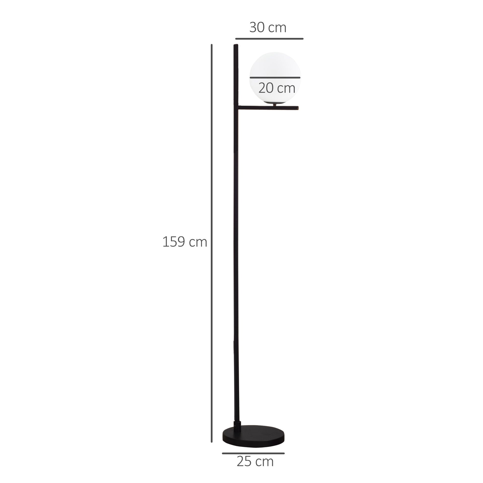Let your lighting do the talking with this floor lamp from HOMCOM. Design fuses a tall, slimline frame, with a glass ball shade fixed on a side arm at the top. The opaque finish of the shade lets out a gentle glow, so it softly illuminates your space - perfect for when you want to create a calm atmosphere whilst the standard lamp is effectively lit up. The frame, made from steel is tough, with a round base for balance. The corner lamp is finished with a foot switch to turn on and off easily.