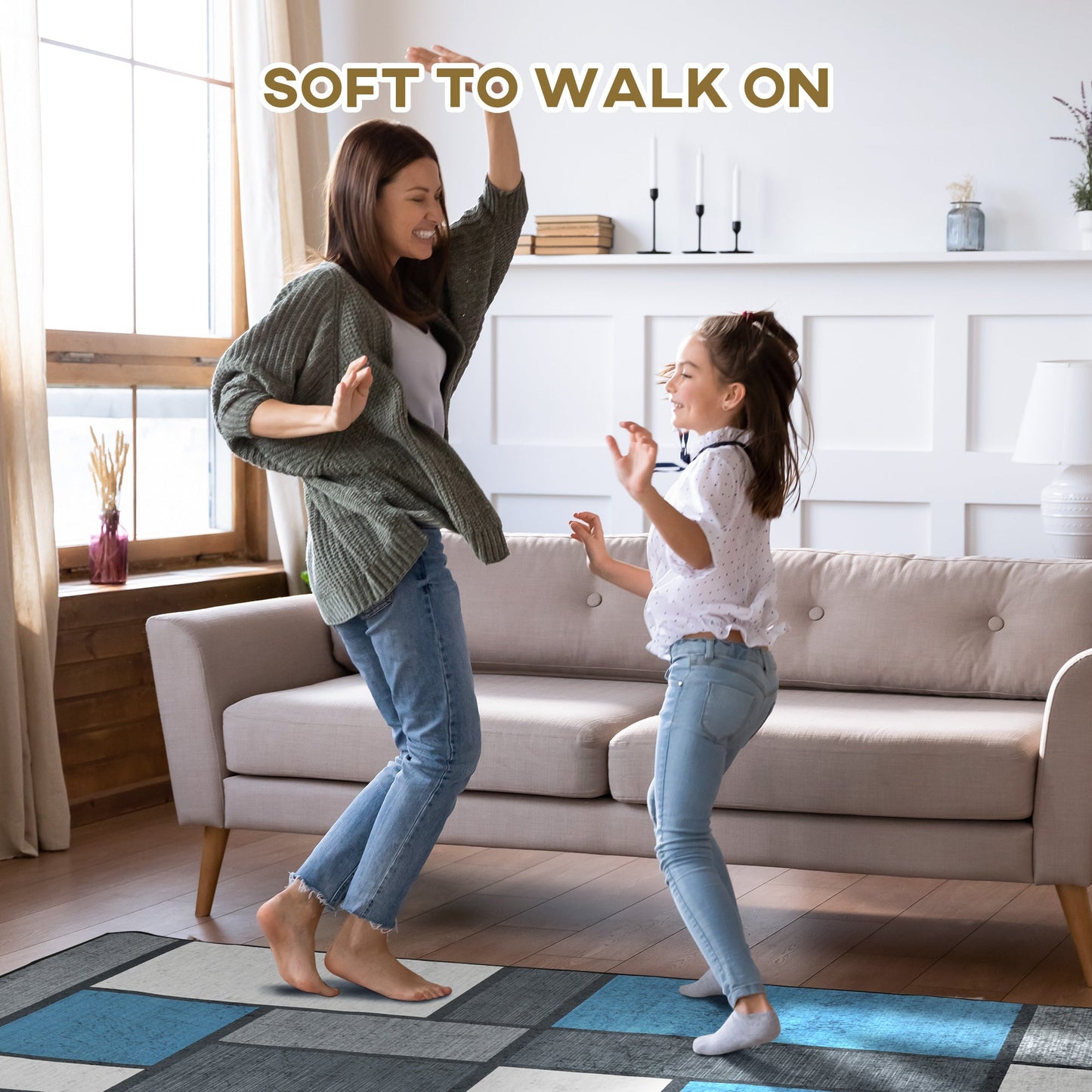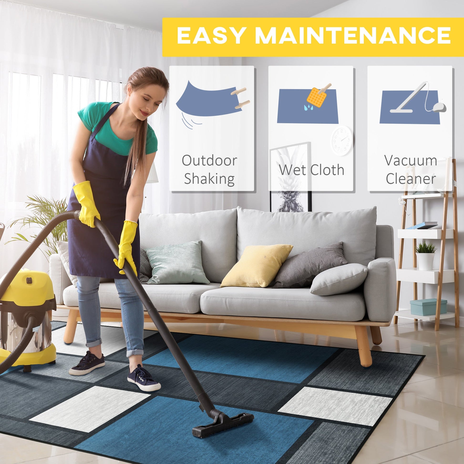 HOMCOM brings you a classic home piece, with a touch of character: say hello to this 150 x 80cm rug. It comes in a bold blue, grey and white colour blocked design - neutral enough to sit itself easily in your current space, yet interesting enough to add a touch of character to wherever you choose. The soft top makes it comfortable to step on, the anti-slip back helps it stay in place. Wears well - great for child and animal homes where it will be walked across quite a lot!