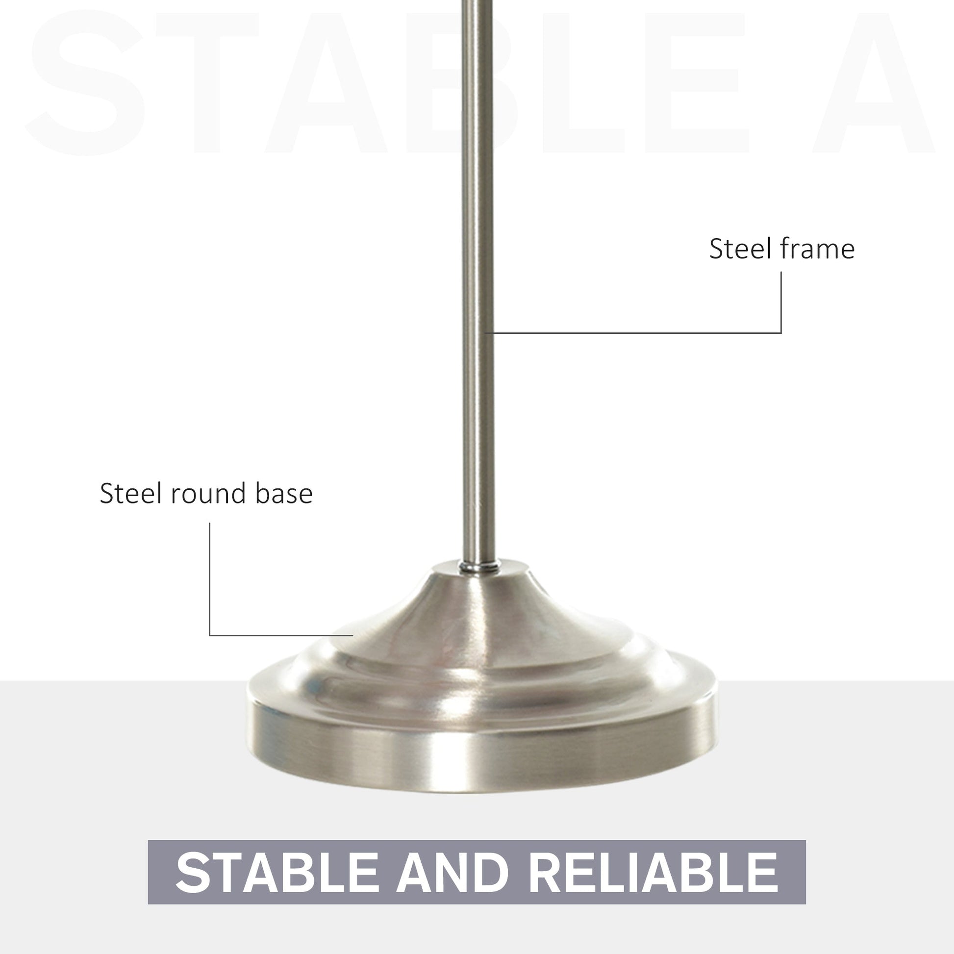 - Steel frame and large round base keeps lamp stable