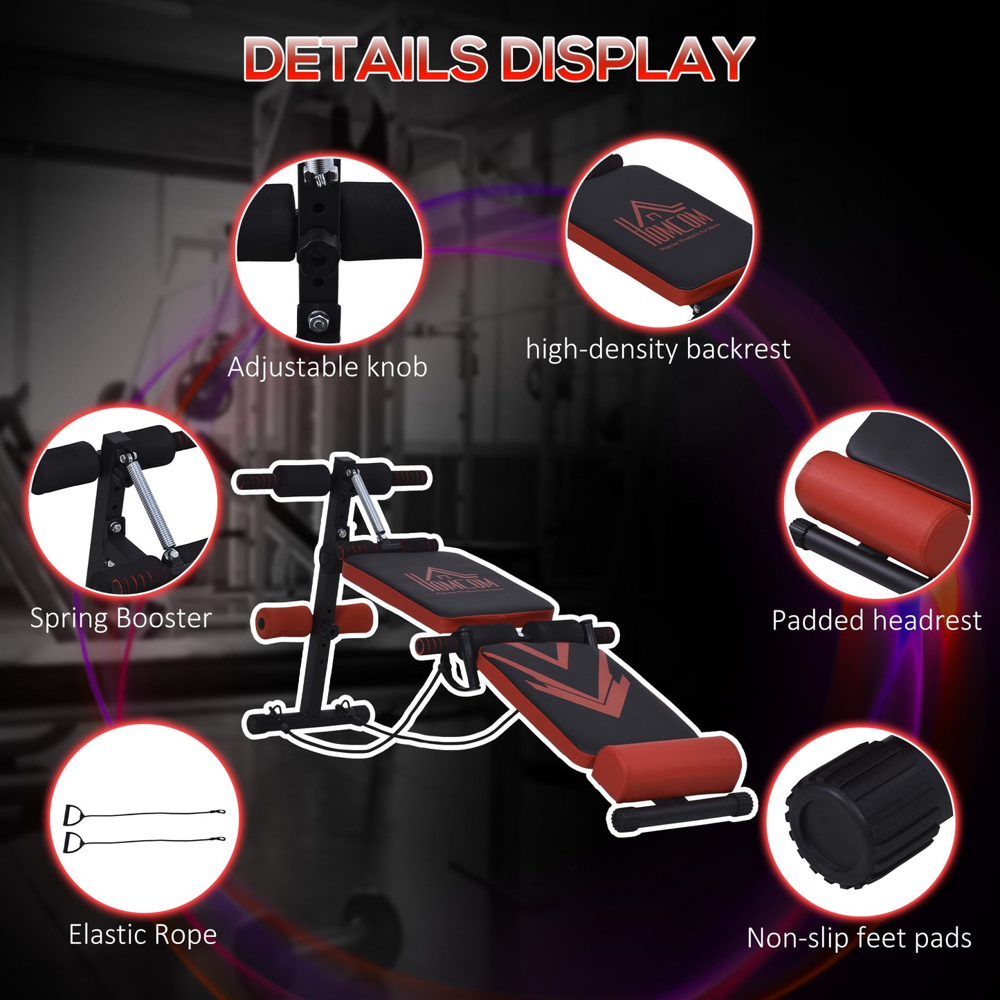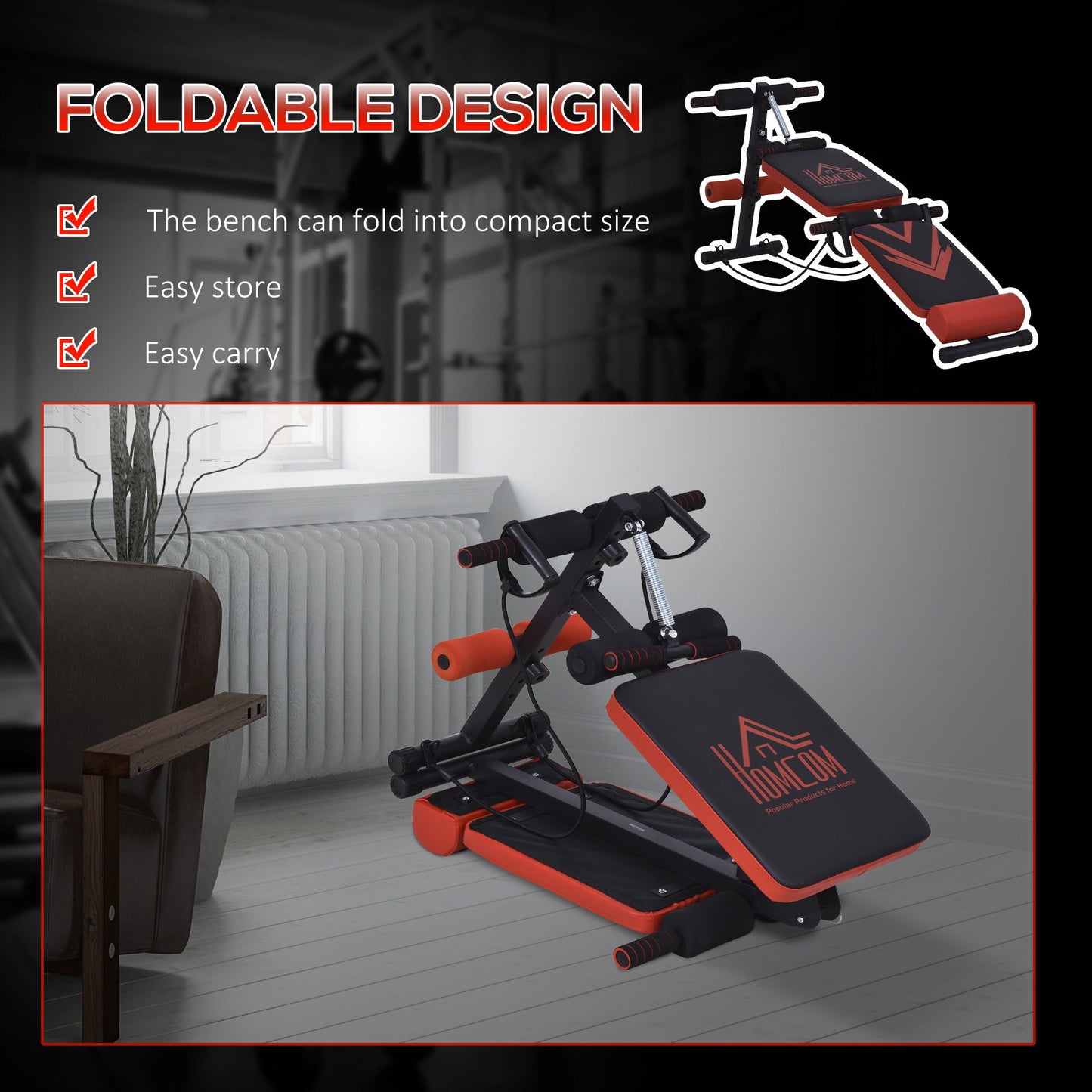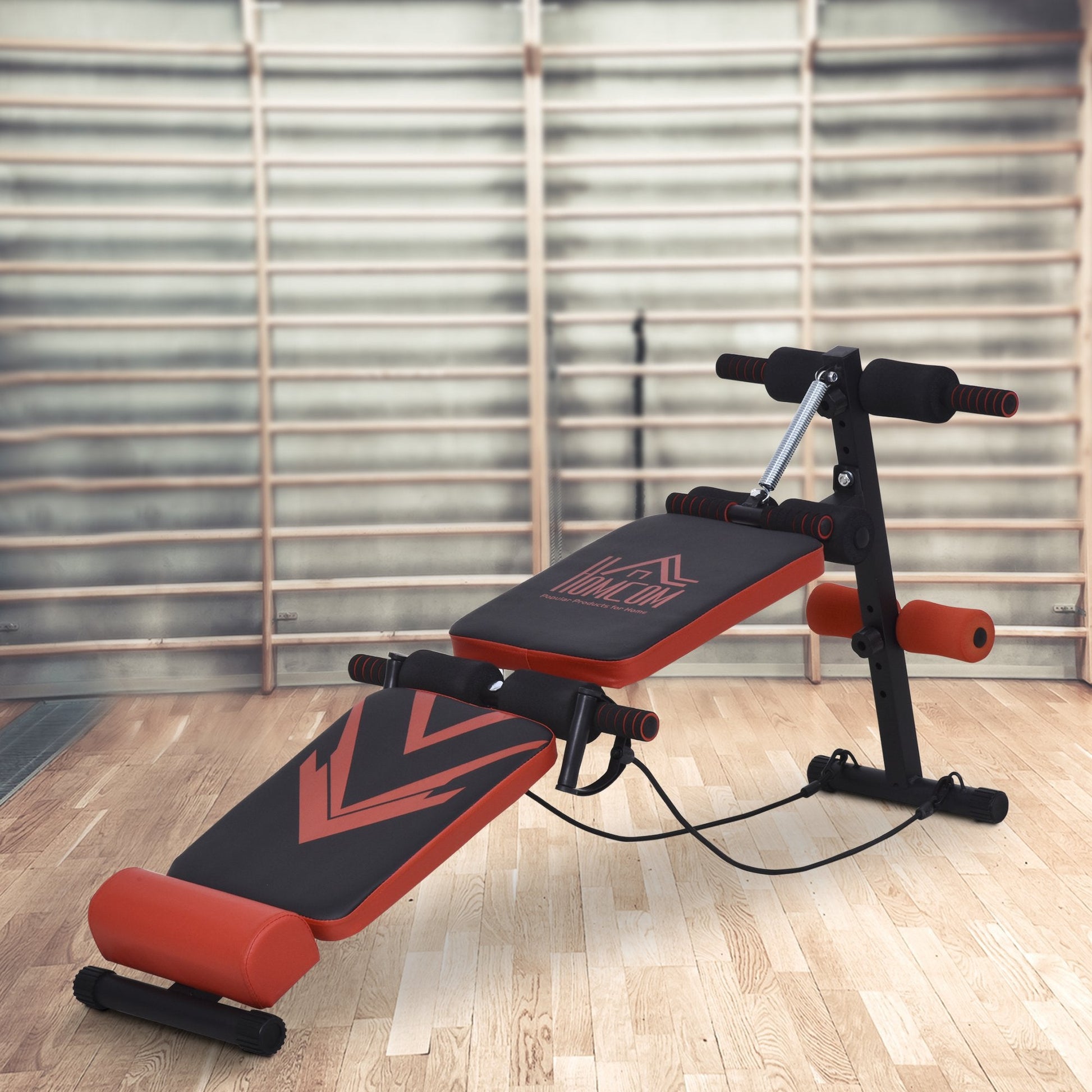 Multifunctional Sit Up Bench Foldable Fitness Equipment w/ Elastic Rope