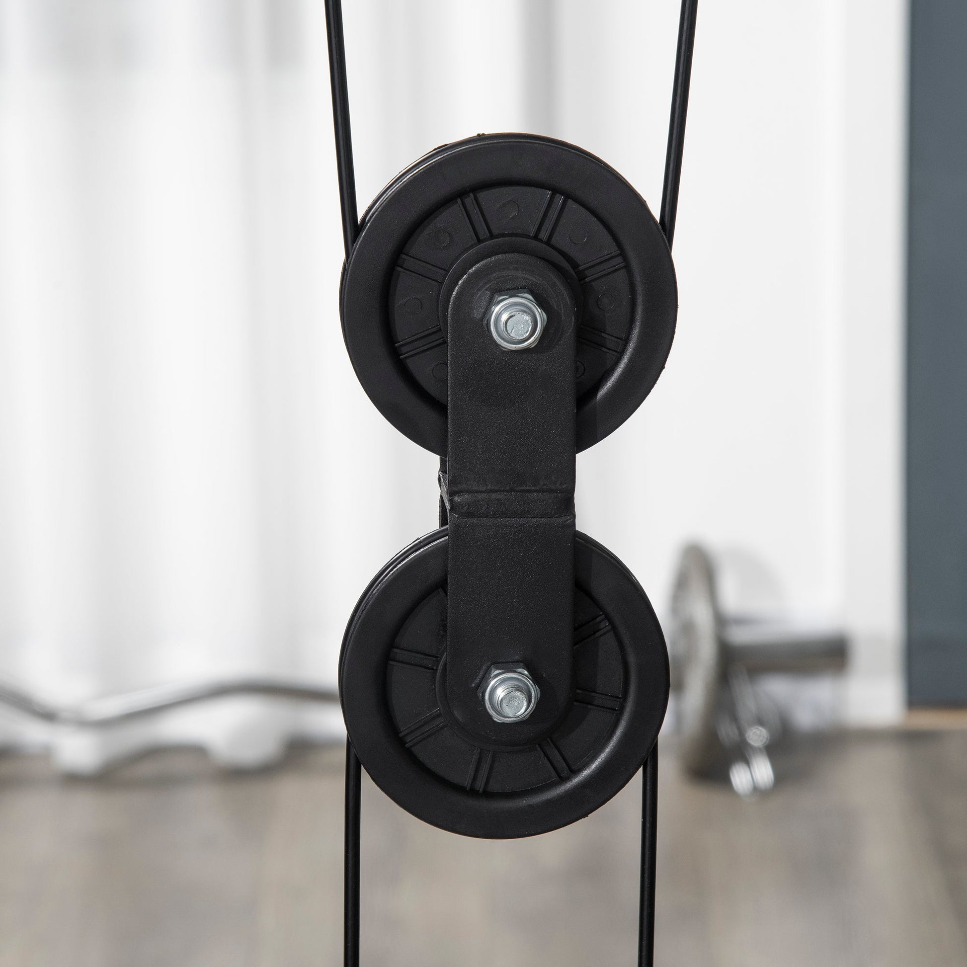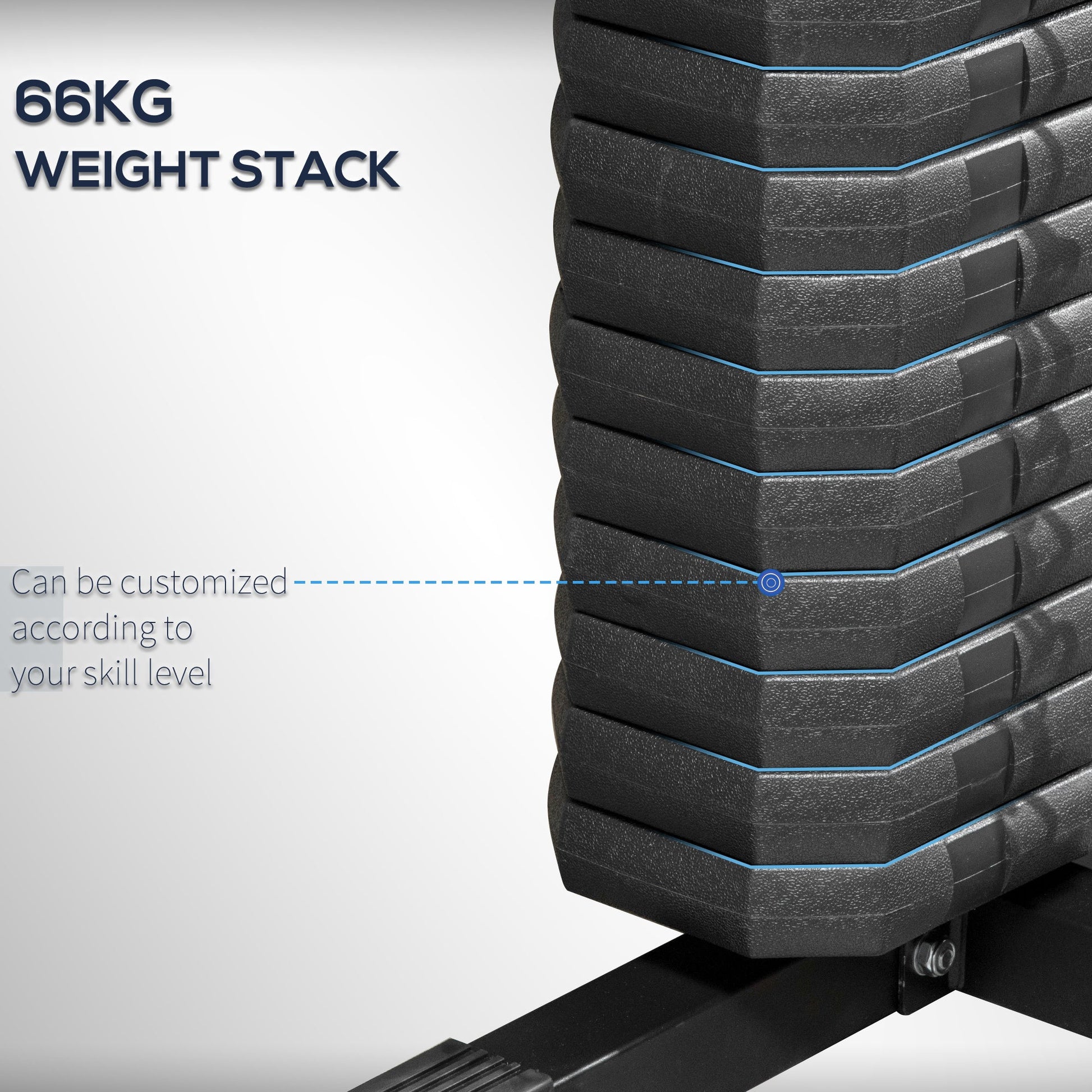 Keep fit with this HOMCOM multigym station. With this home training equipment, you can do lats pulldown, pec fly, chest press, leg curls and leg extensions, ensuring you get a full body workout and build strength. Sitting on a thick padded seat and backrest, you'll be comfortable as you break a sweat. Its solid steel frame keeps the station in shape when in use, whilst the non-slip footpads keep the station balanced and steady. You'll have your very own gym, taking weight training to the next level.