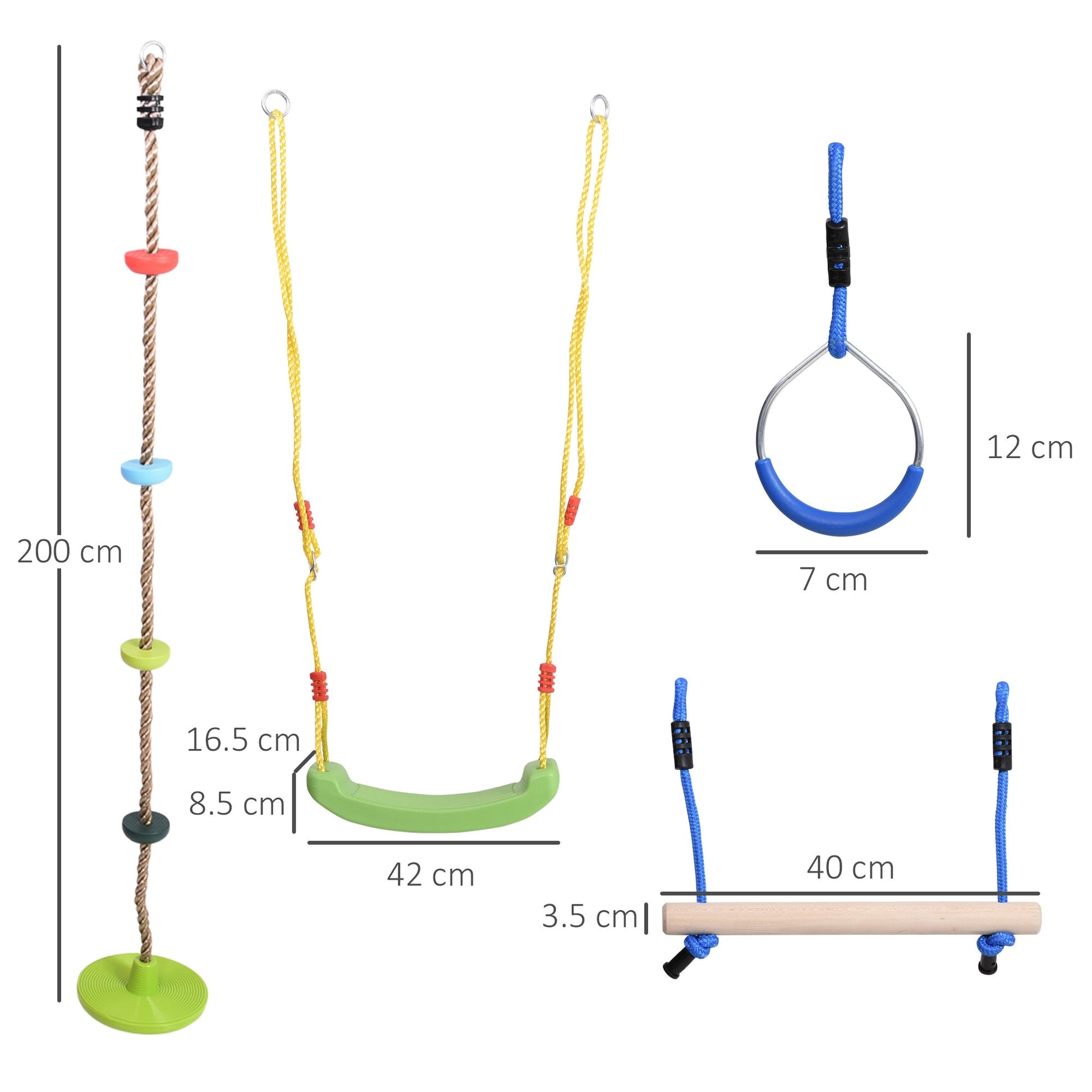Are you still worried about your kid's addiction to TV and computers? Outsunny ninja warrior obstacle course help you solve the trouble and let your baby into the outdoors. Quality material and complete accessories ensures children safety when playing. Equips with monkey bars, gymnastic rings, climbing rope, fist holder and swing, your kid can play with their friend together. Suitable for children aged 5-12. Hang them in your home or yard to add fun to childhood. And brings fun experience for all day.