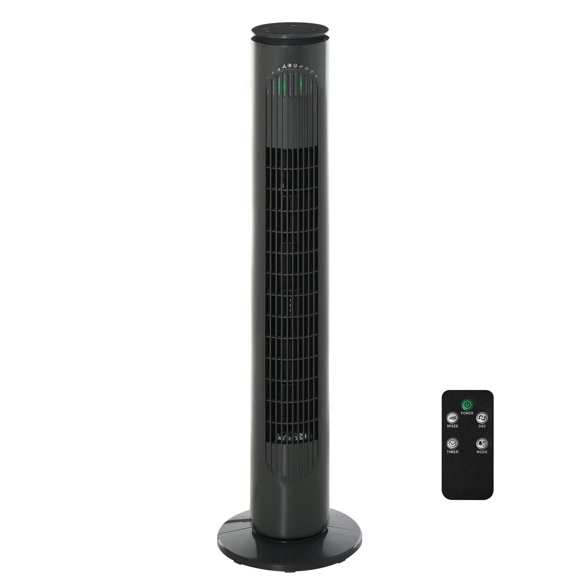 - Green LED light at the top features speed setting, fan mode and timer